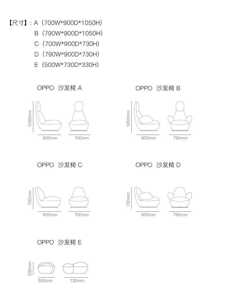 OPPO 沙发椅 系列尺寸/示意图