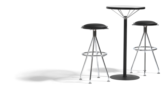 基座和踏脚板在涂漆钢。辐条在不锈钢。在压缩模制的层胶桦木帘布层表轮缘。表顶部在玻璃表高度590/710/890/1060毫米,桌面Ø480/580/680 mm,踏板Ø450 mm,重量kg 11,4-13,5。