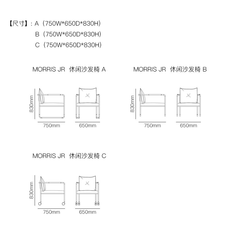 MORRIS JR 休闲沙发椅 系列尺寸/示意图