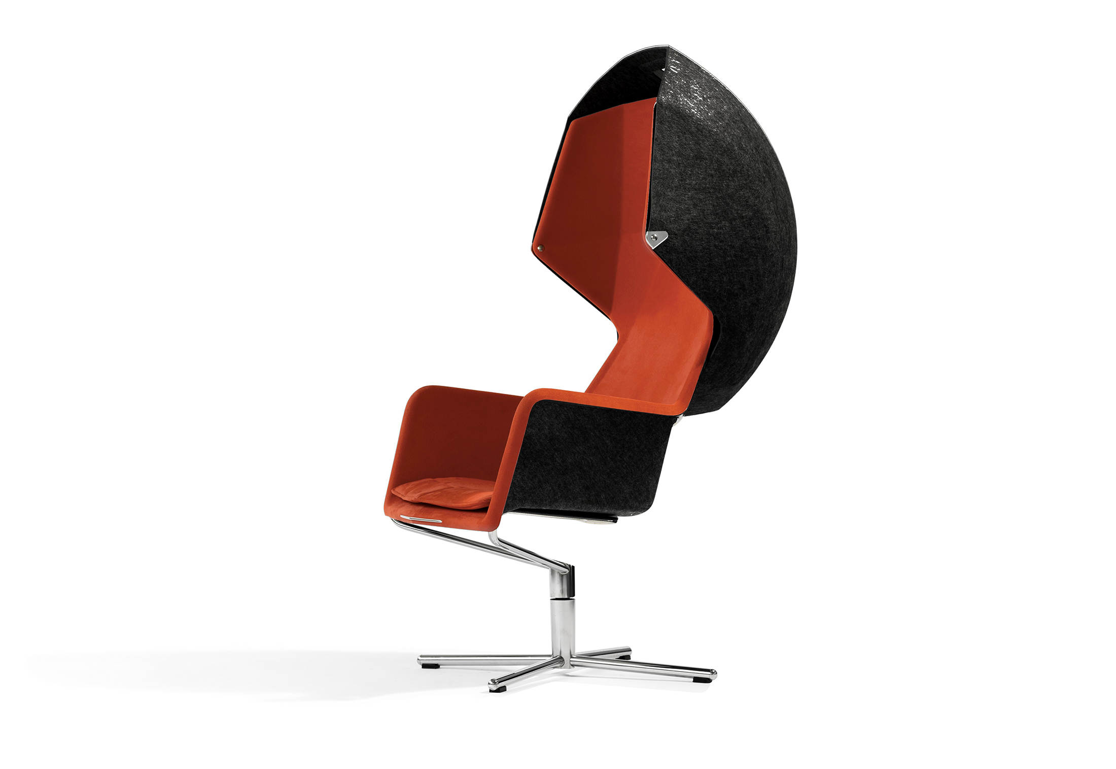 Peekaboo -Peekaboo是一种现代悬臂式翼椅,具有formfelt的织物或皮革层压座椅壳。由于formfelt的特殊特性,座椅壳具有吸音特性。Peekaboo可用于多种内部装饰中它们是机场,休息室和候机区。Peekaboo可用于创建一个小的绿洲,一个自己的小房间。一个私人通话或打个na的地方。模压成型的座椅壳可容纳100人%聚酯纤维。外壳内部可皮革或织物层压。外部可层压在织物上。带有机玻璃面板的成型毡罩。镀铬管状钢底架。乙缩醛塑料支脚。座椅高度380 mm,总高度1295毫米,总宽度700毫米,座深485毫米,总深度700毫米。