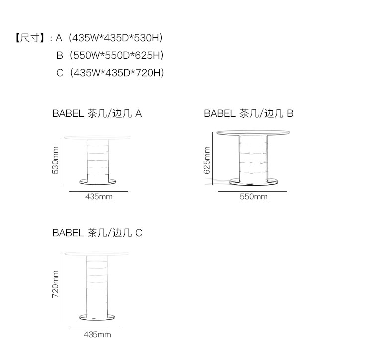 BABEL 茶几/边几 系列尺寸/示意图