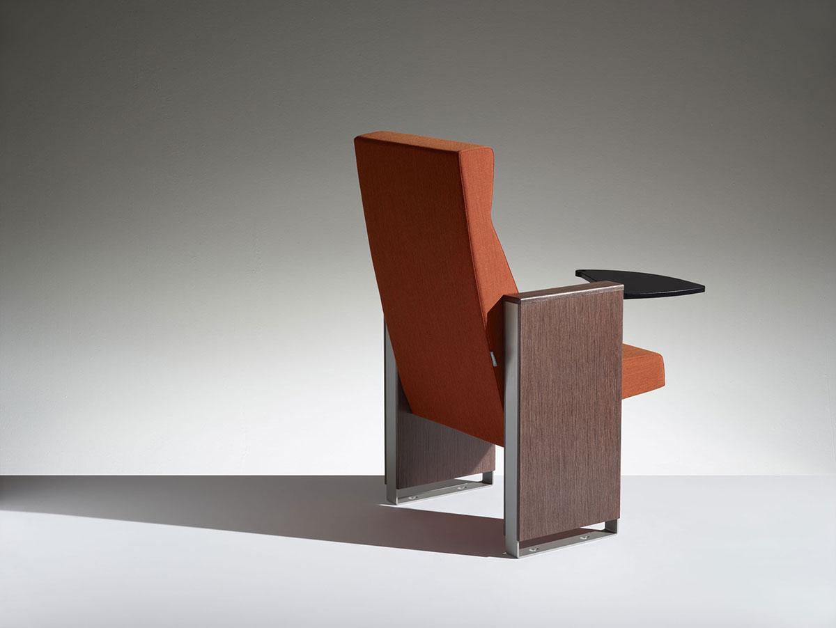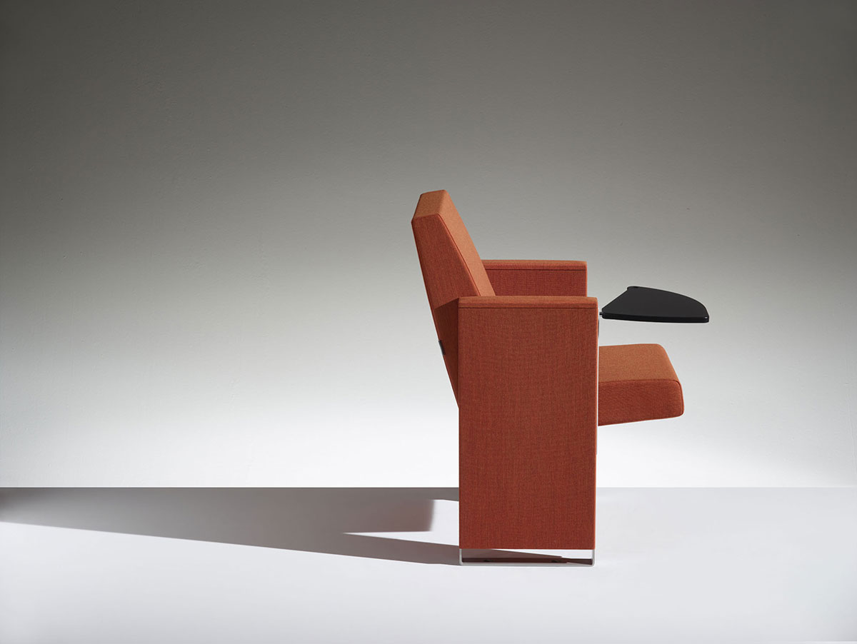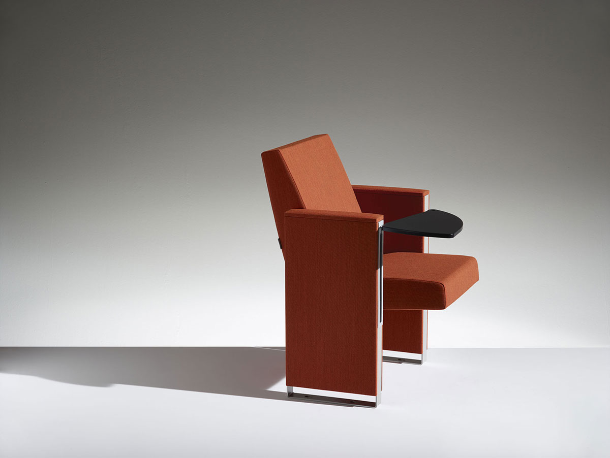 Atoma座椅具有高靠背,非常舒适,也非常实用:根据型号的不同,其防恐慌书写板可立即折叠到扶手或靠背中。旨在配备大型会议室或礼堂的Atoma系列办公家具可用于带有编号的直排或弯排。