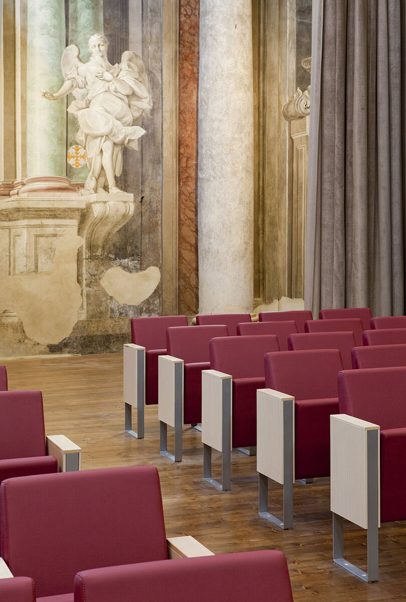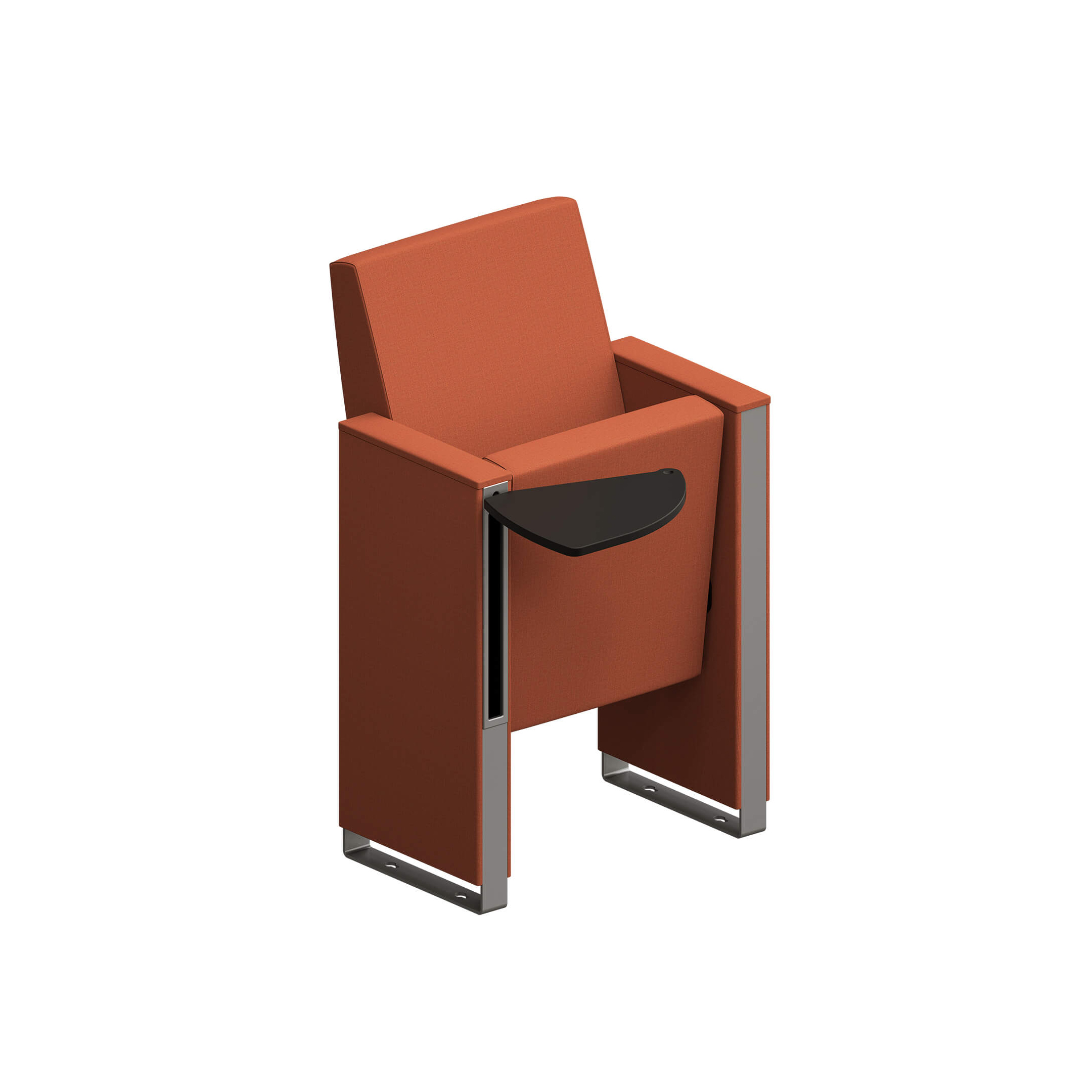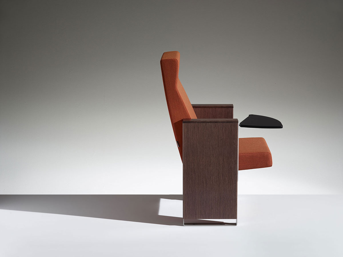 Atoma座椅具有高靠背,非常舒适,也非常实用:根据型号的不同,其防恐慌书写板可立即折叠到扶手或靠背中。旨在配备大型会议室或礼堂的Atoma系列办公家具可用于带有编号的直排或弯排。