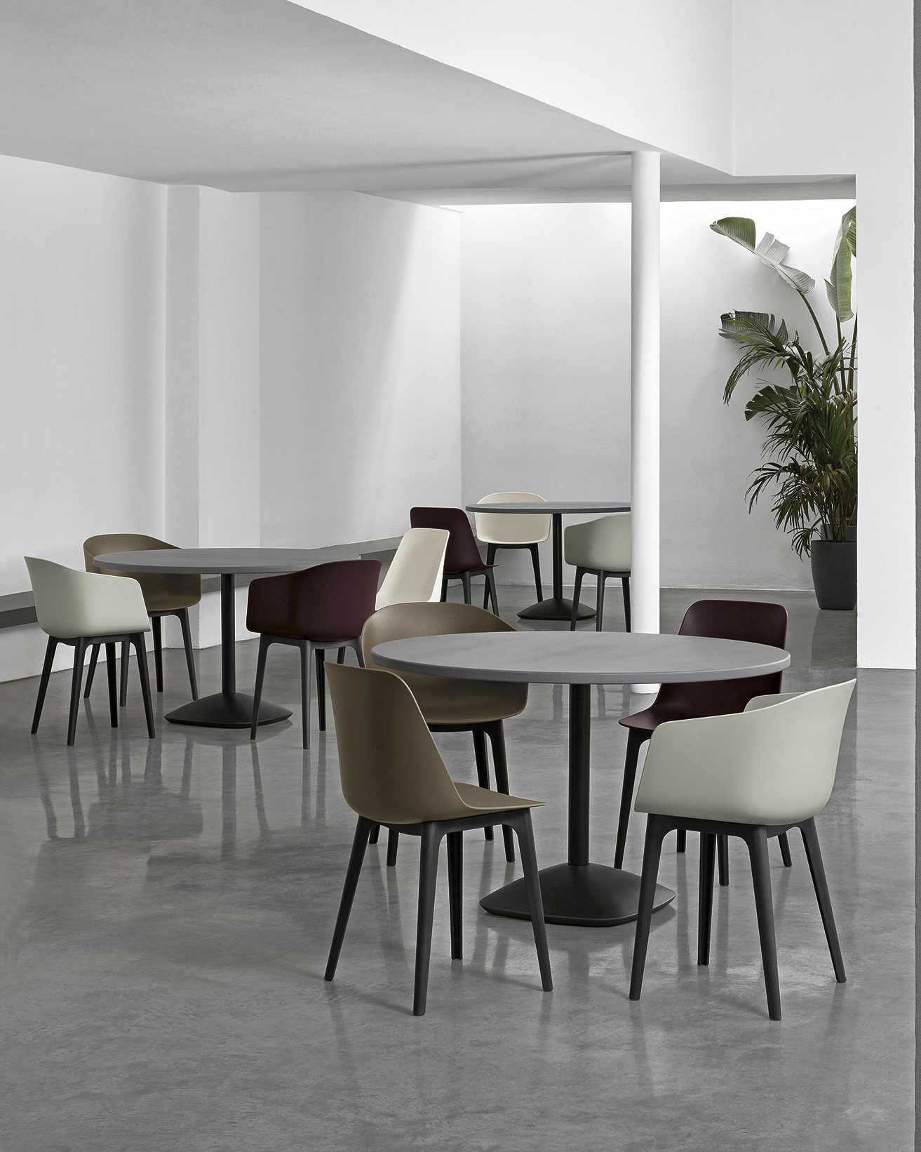 材料和涂层之间的关系显示出“混合搭配”的态度:一种连贯的组合系统,可在使用环境中促进标识和协作。开放和灵活的椅子和扶手椅计划,可满足对多功能性,舒适性和可持续性的需求。收集与制作 RE MAX ® 新材料100%回收PP和木材。