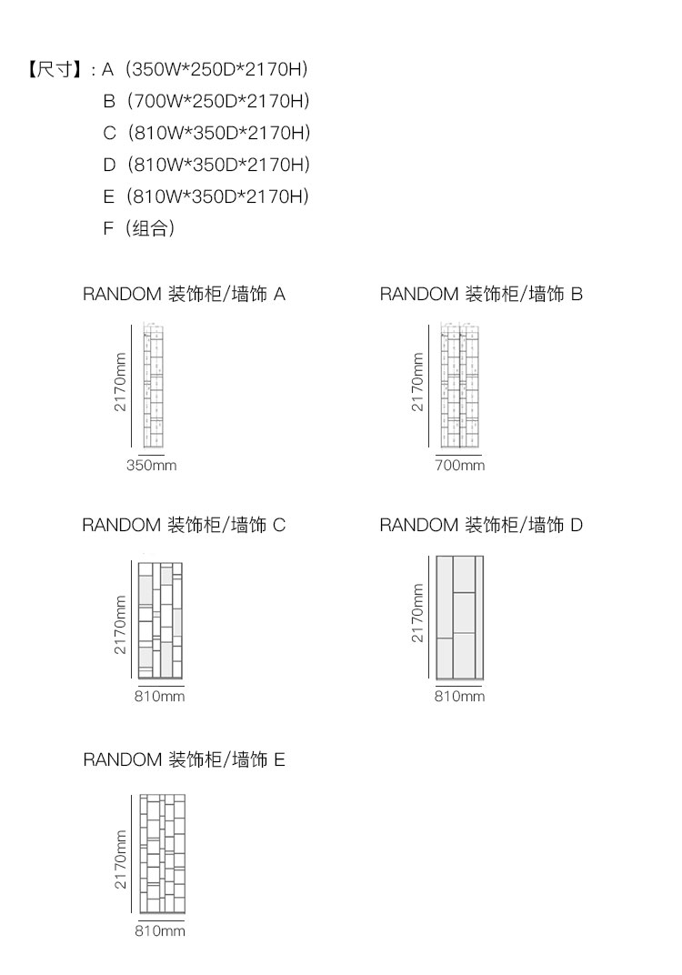 RANDOM 装饰柜/墙饰 系列尺寸/示意图
