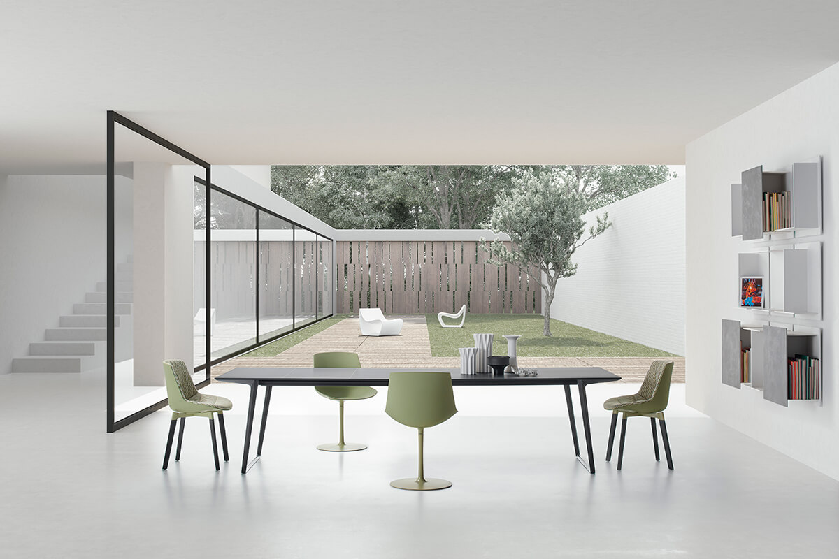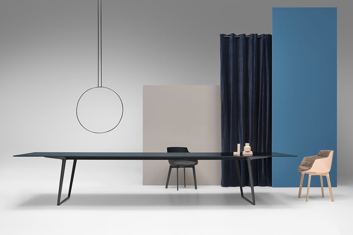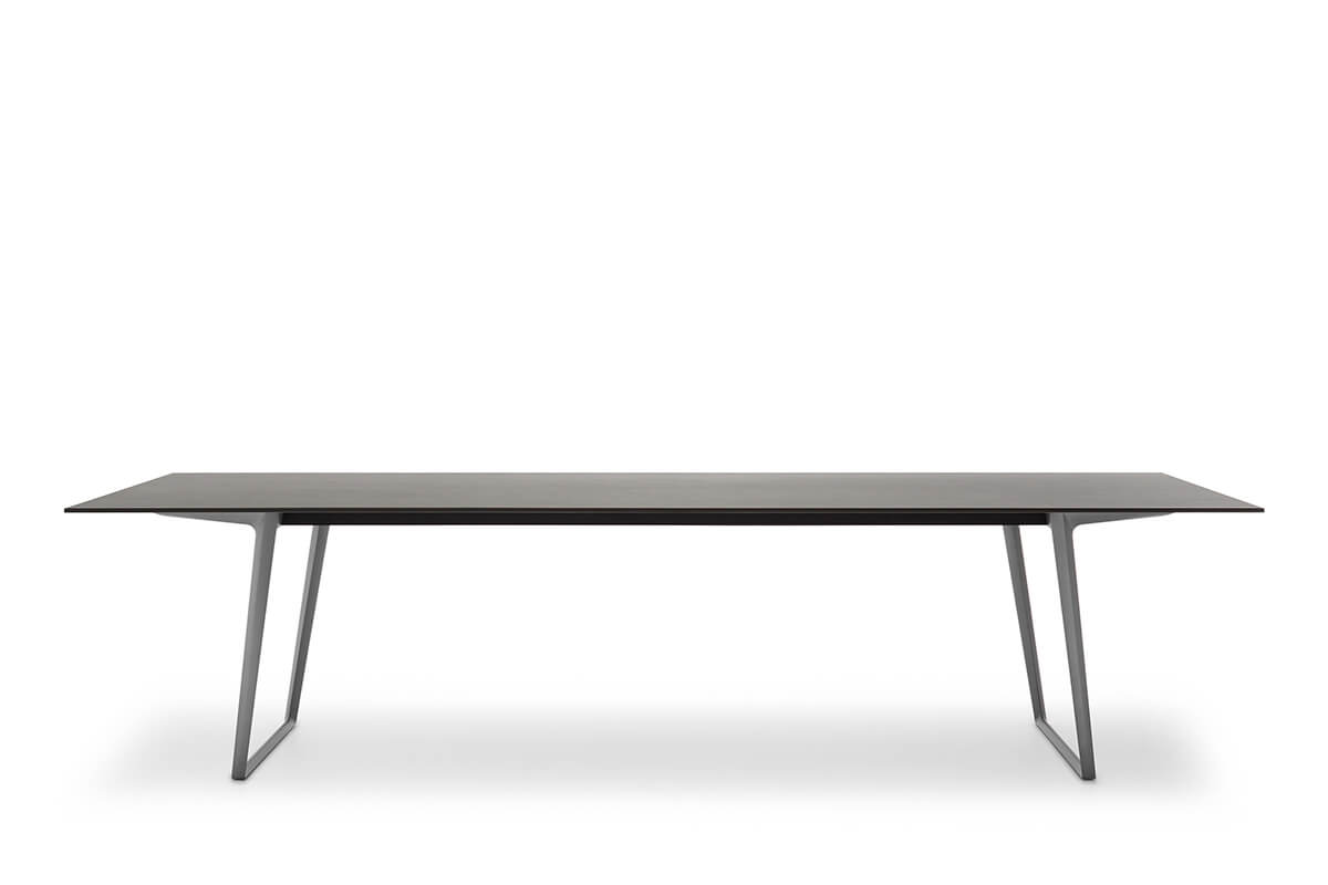 轻巧与动态悬挂感相结合是新桌子系统Axy设计的主题。这是一种基本架构,其中两个完全由铝制成的结构桥的原始设计重新组合了张力和强度线,并具有有效的表现力。 薄薄的顶部使桌子更加完美,传达了总体的空中印象,同时又保证了稳定性。Axy有多种配置可供选择,包括可扩展版本,多种材料和饰面,可自然地适应从餐桌到办公桌的各种室内和室外使用。 长方形桌子有20种尺寸和不同的深度,高度为73cm,类型和配置: -固定:AXY和AXY舒适型 -可扩展:AXY扩展。