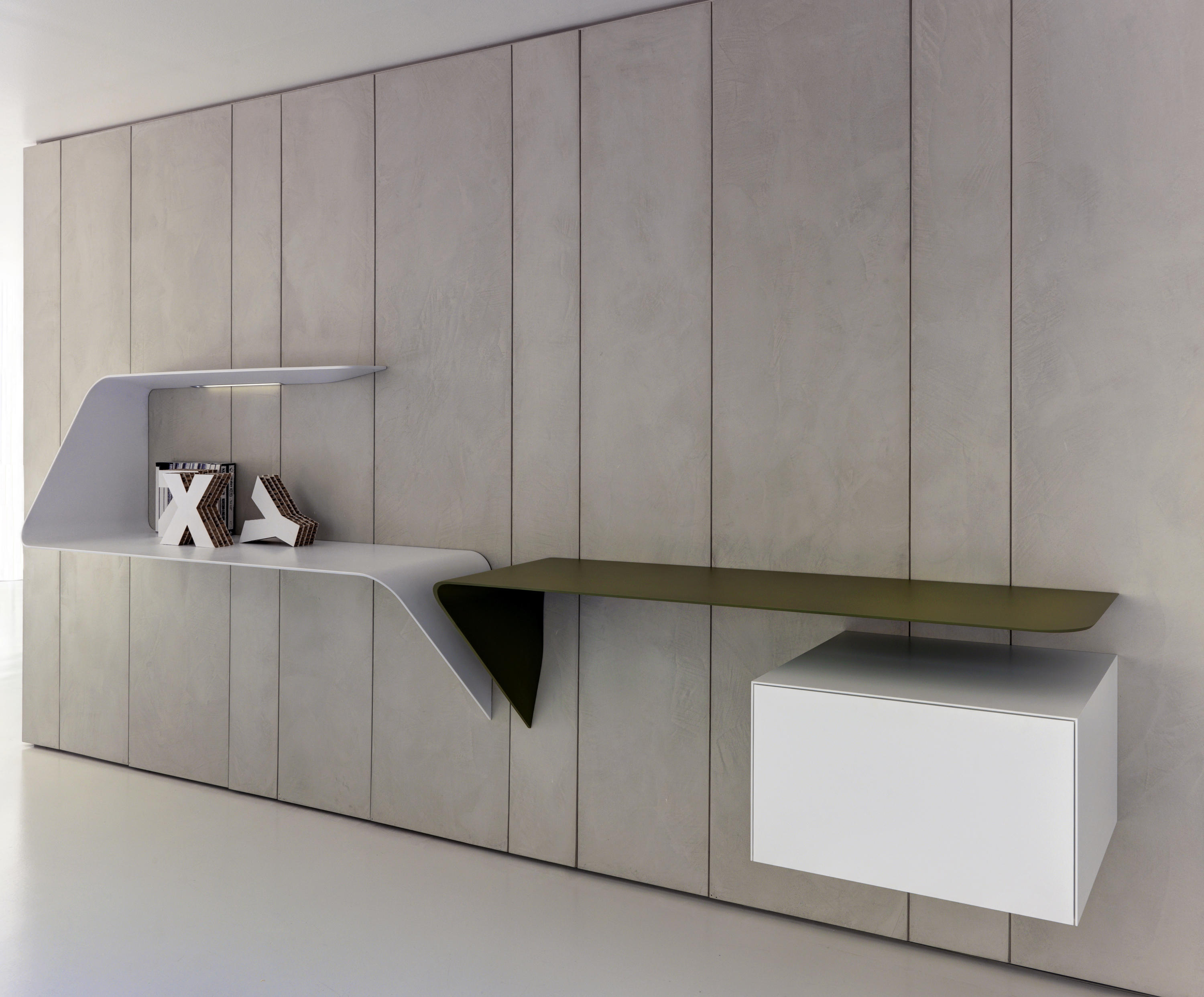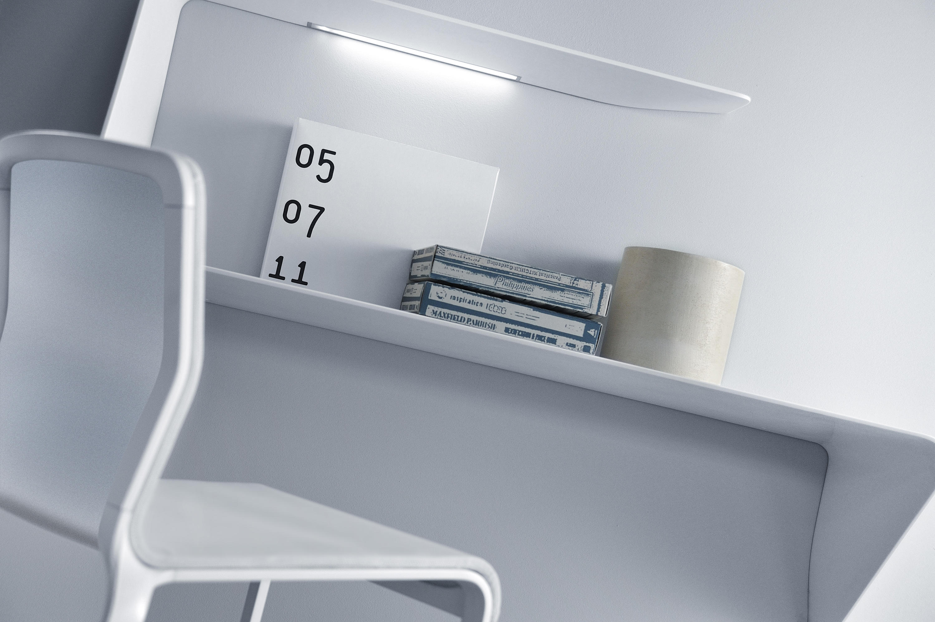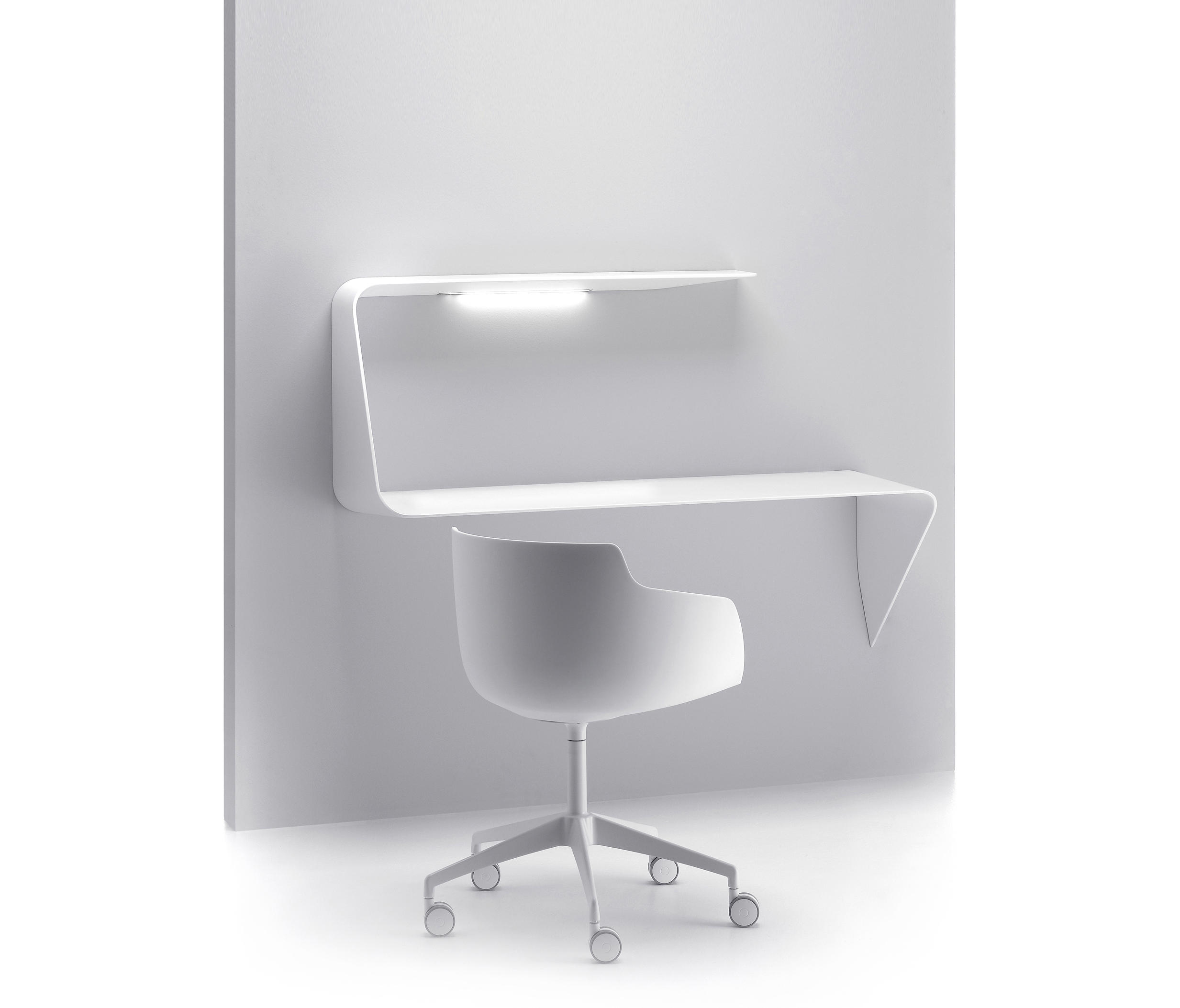架子和/或壁挂式书桌。波浪形和渐缩的厚度为产品的设计和图像增添了强烈的视觉冲击。Mamba还配备了白色的HD LED。
