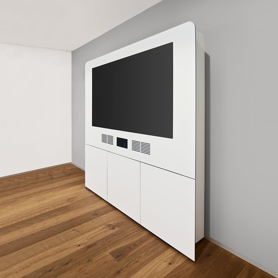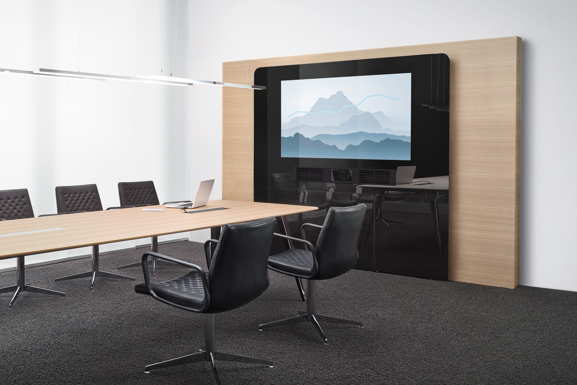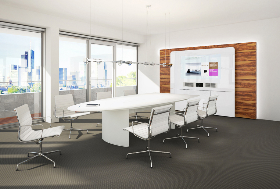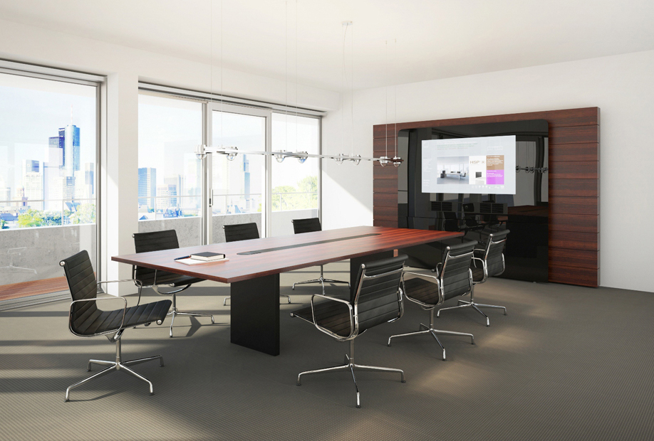 专门为视频会议所设计研发的多媒体墙,无论屏幕大小又或媒体墙整体尺寸均可根据客户需要,灵活定制(屏幕订制尺寸从65寸起订),为各种形式的演讲、沟通、视频会议提供最高效的解决方案。W4采用Holzmedia高品质材质打造,有多种配置及附件可选。并可根据客户需要,在媒体墙自带的储物柜中隐藏所有技术组件,为产品的使用和维护提供最大程度的便利。