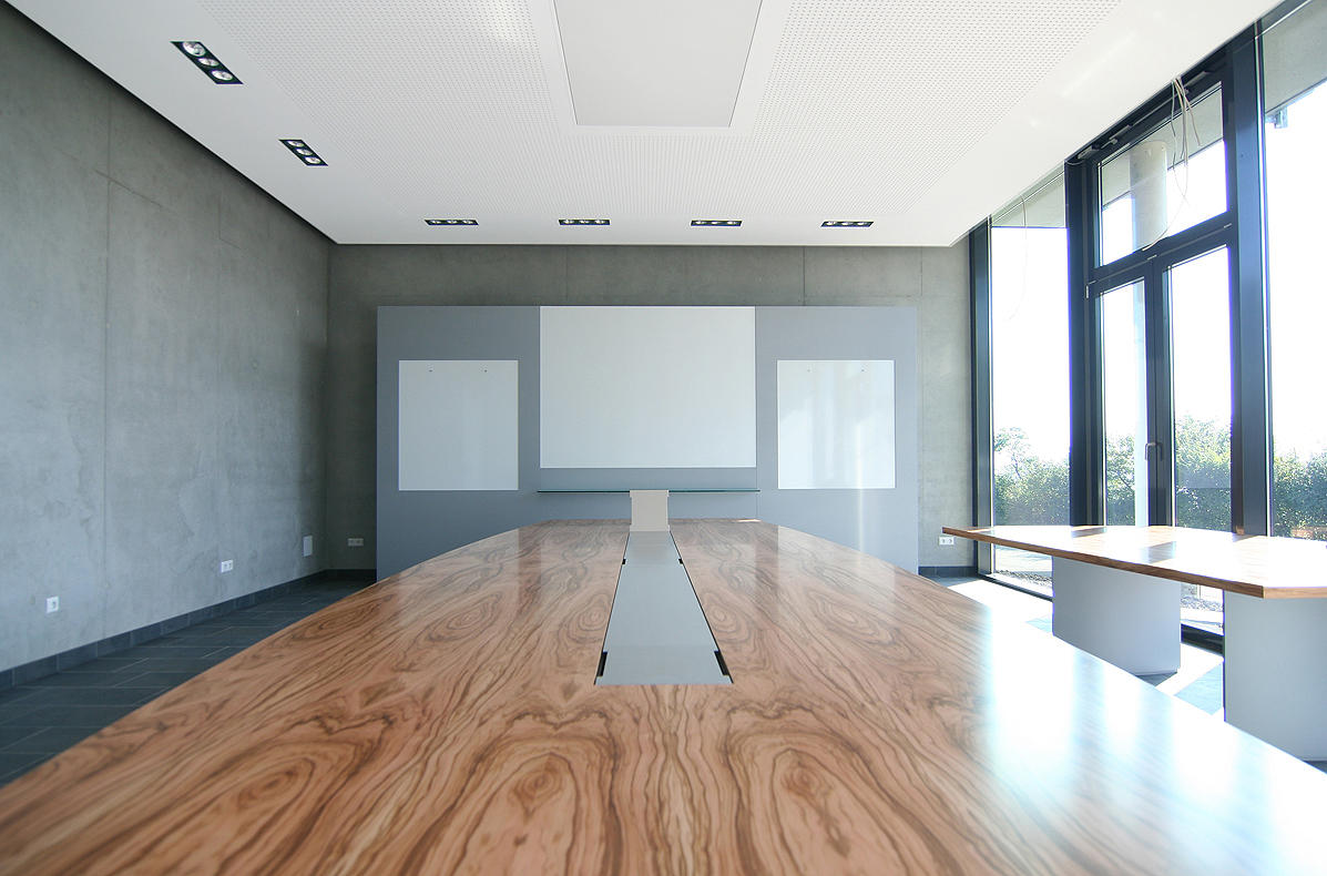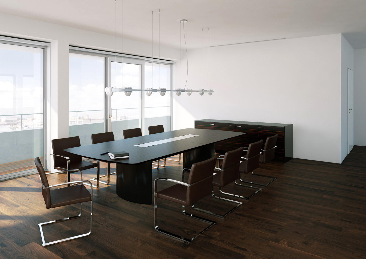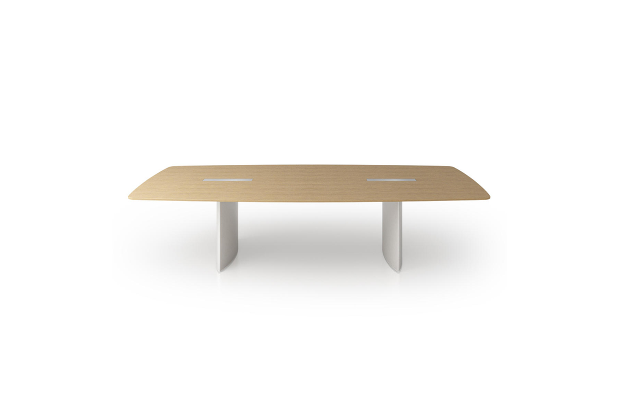 船形或椭圆形为基本形状的高级会议桌,经典椭圆形或长方形脚, 用于隐形电缆布线和技术集成-易于维护.