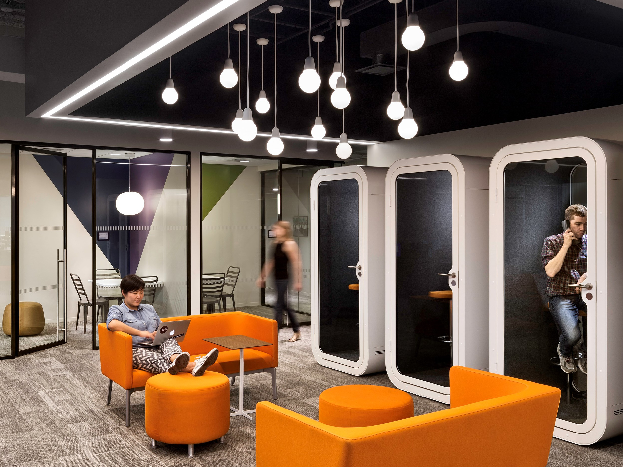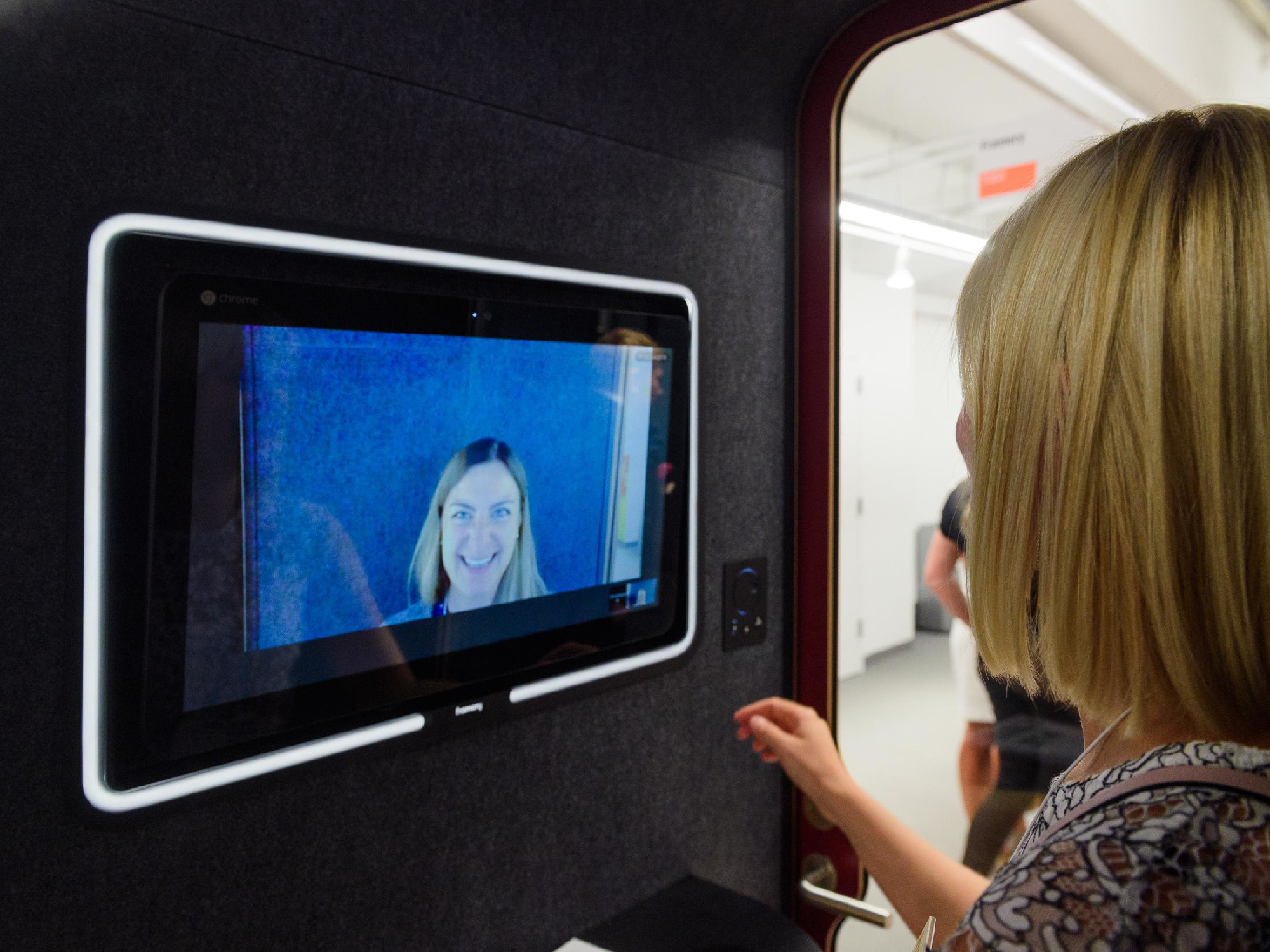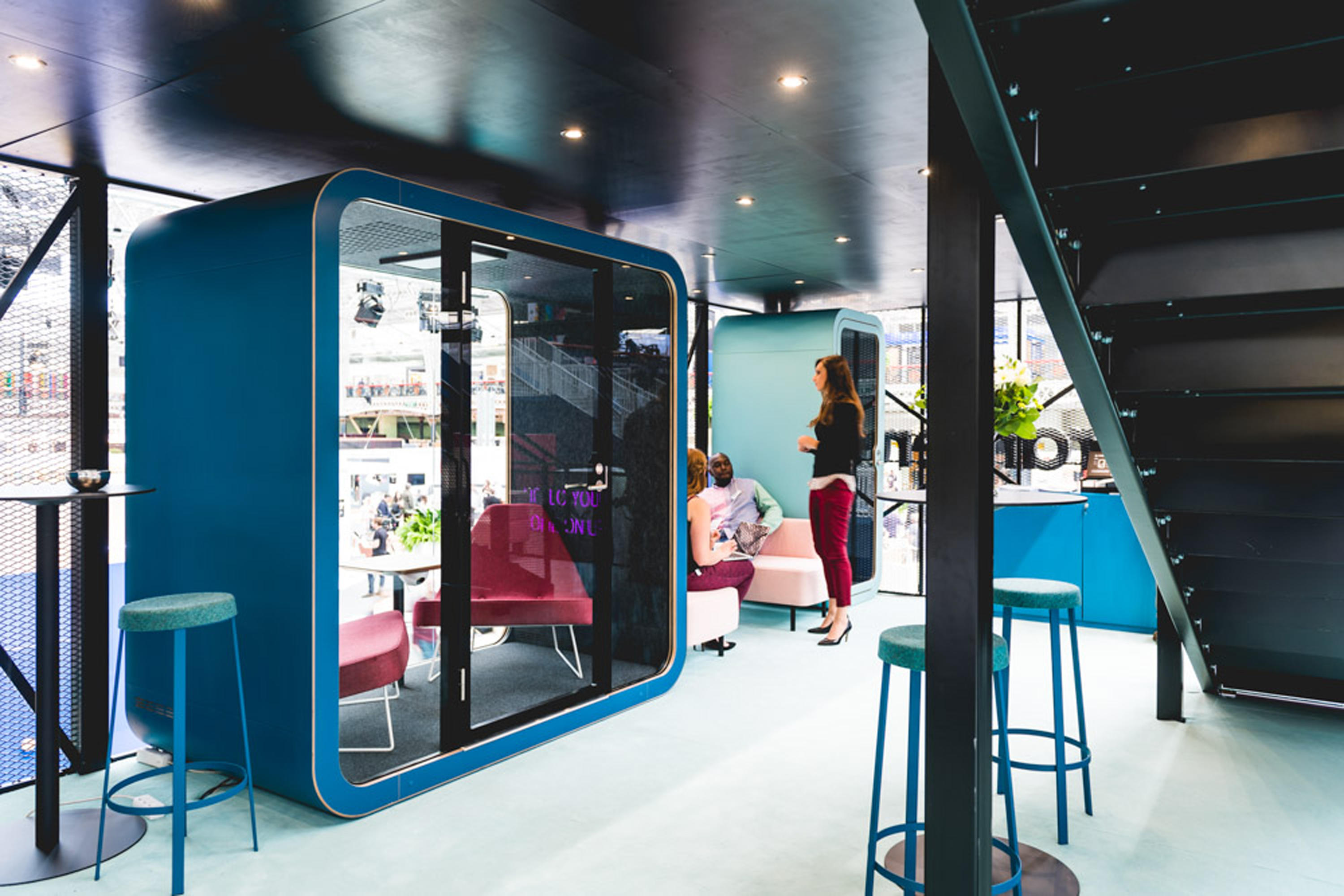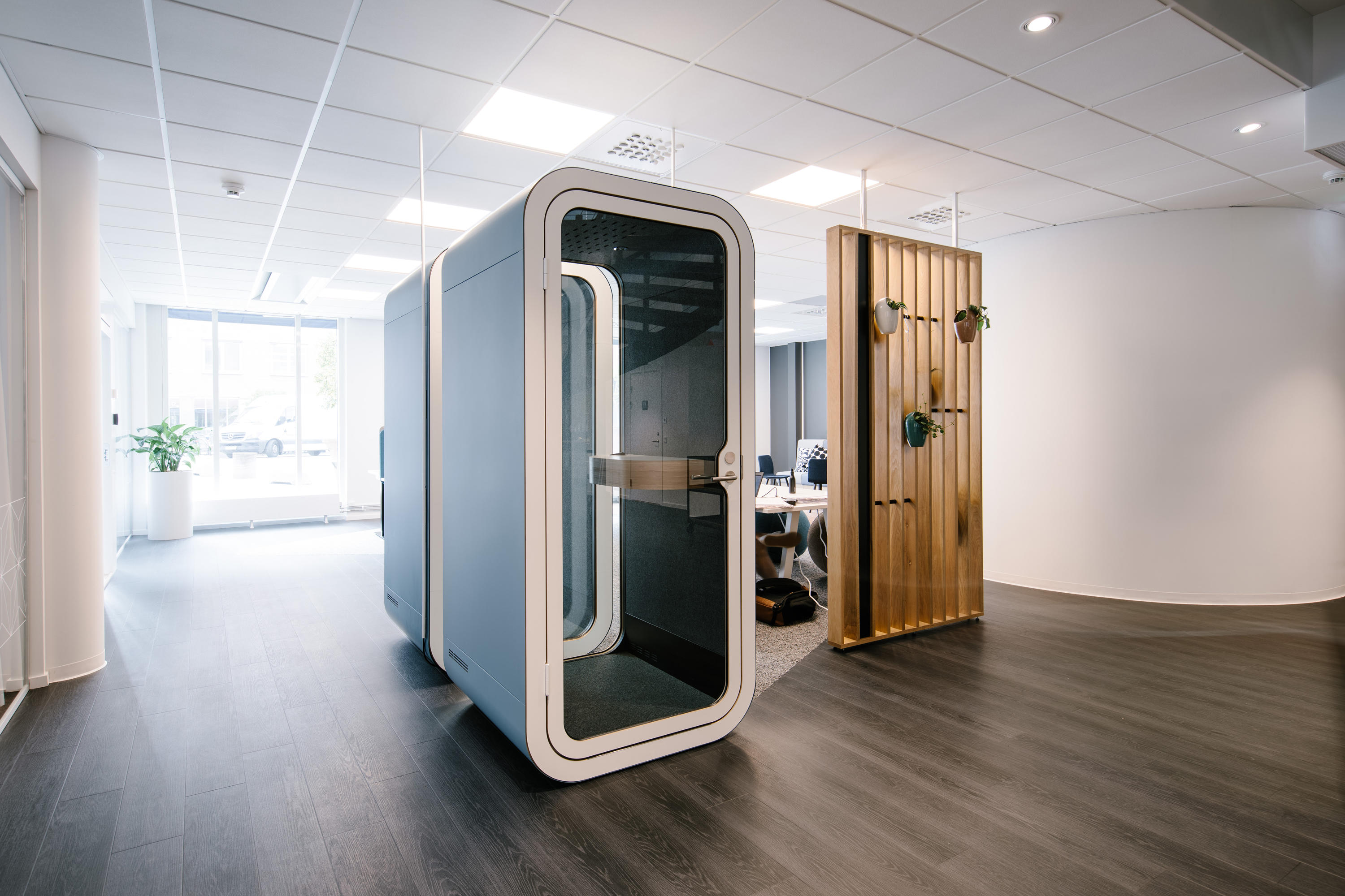 简单而显著。 FrameryØ荚是一个声音隔离工作区非常适合打私人电话,视频会议和艰巨的任务,它减少了在开放式办公室的噪声和释放的潜力提高整个组织的日常生活个人。它可以提高生产率并减少工作繁忙-这样,Framery可以提高员工的满意度。通过简单的组装,可以根据现有的平面图轻松地将吊舱放置在办公室周围并进行重新安置,从而使人们可以快速摆脱噪音。 步骤为视频会议的隔音世界的倾斜屏支架Framery o视频会议准备就绪可以将各种类型的屏幕连接到吊舱的墙上。您可以将显示器或多功能计算机固定在屏幕支架上。屏幕周围的LED照明为视频会议提供了最佳照明。控制面板,可以调节照明和气流。