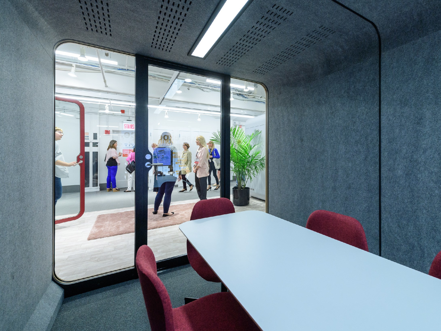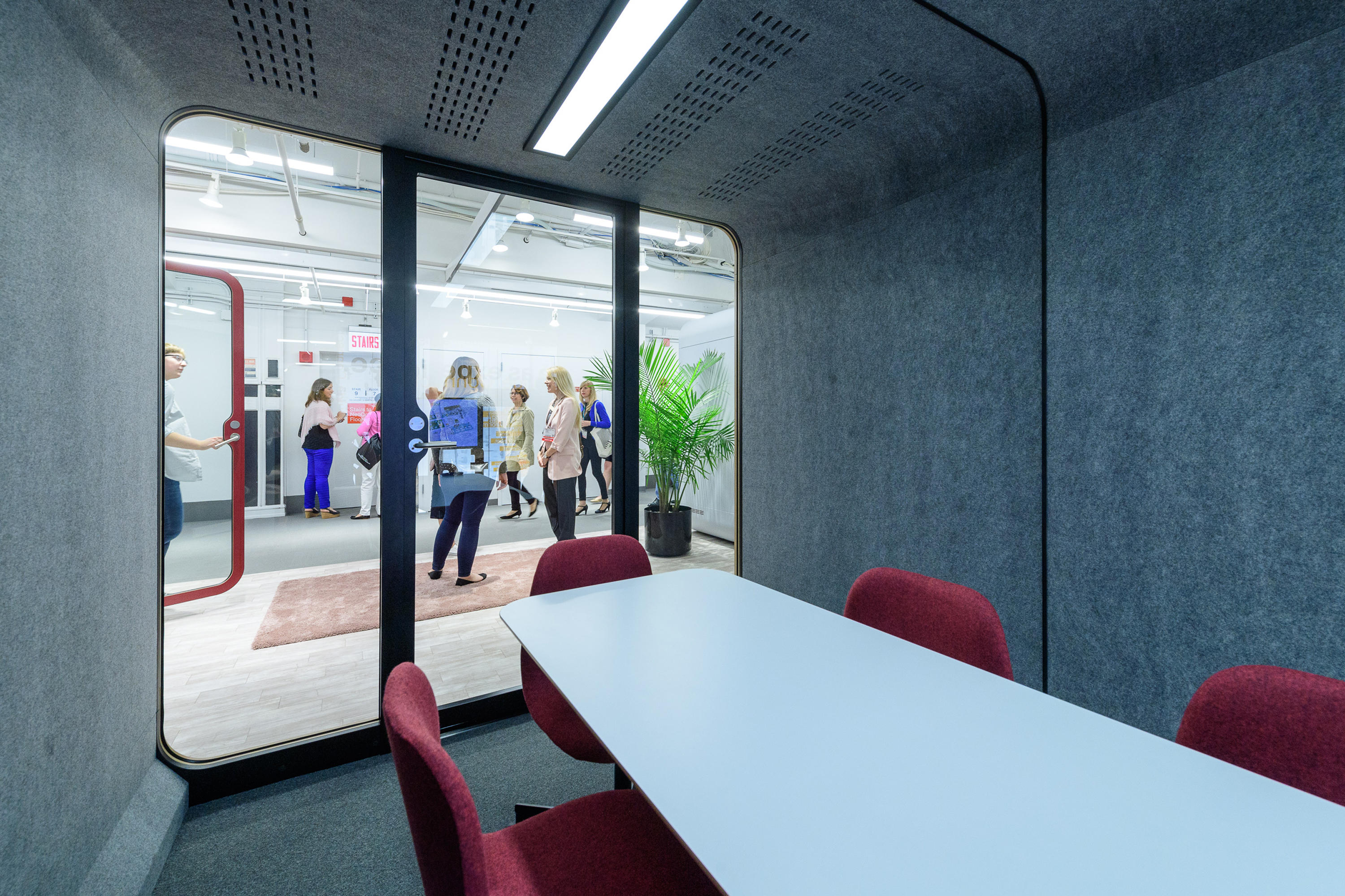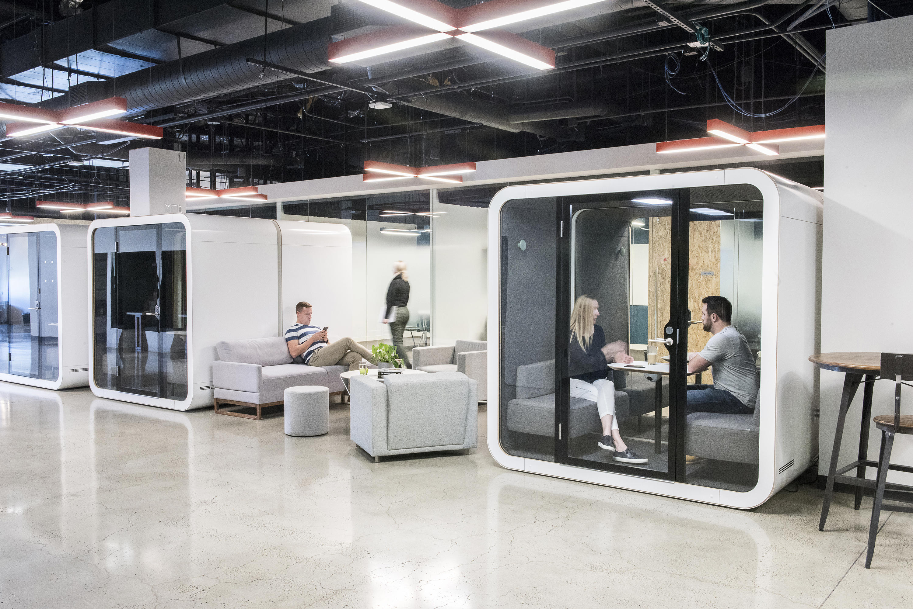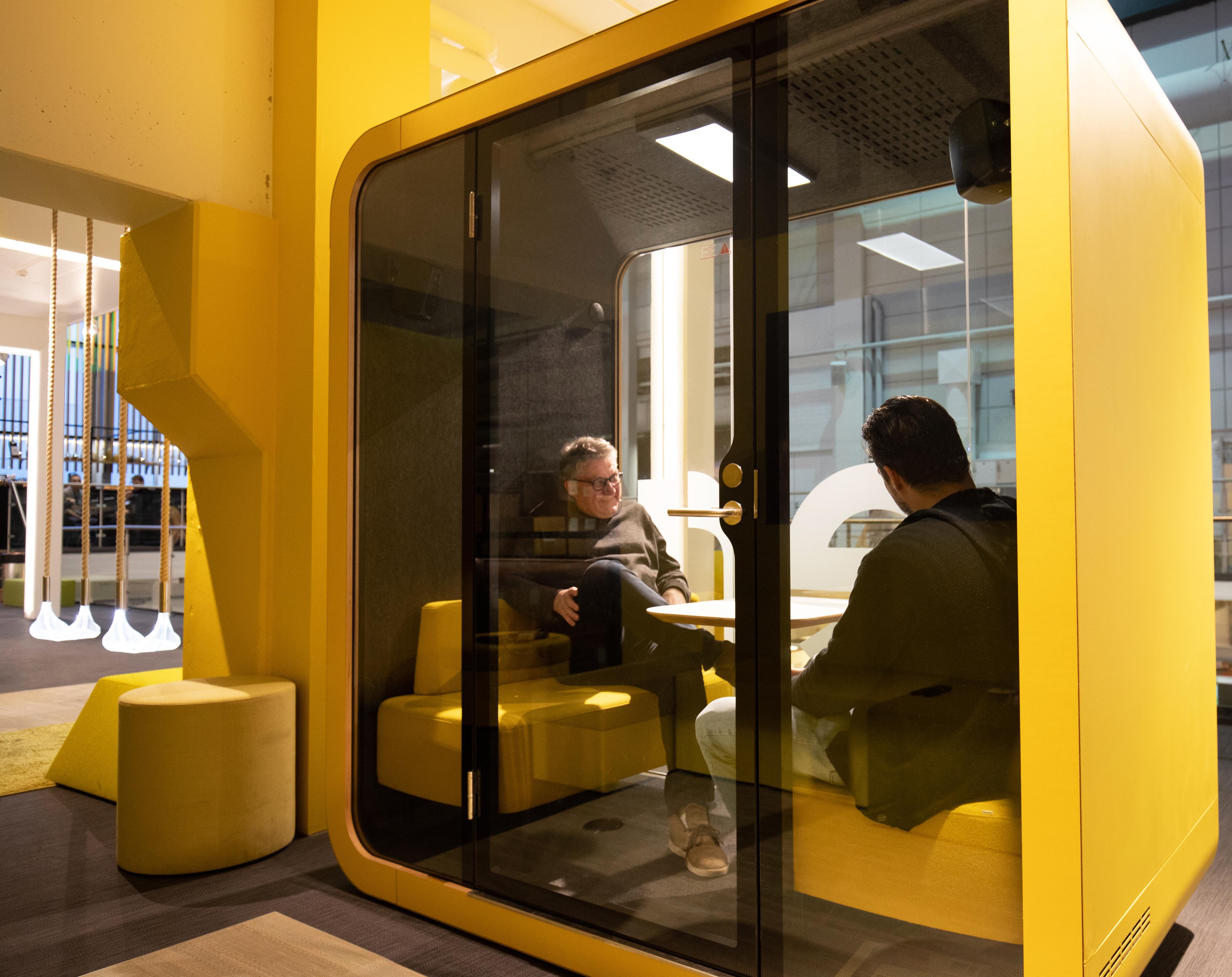 Framery 2Q是会议荚概念化打击缺乏隐私在开放式的办公楼层平面图。可同时容纳四到六人,Framery 2Q为用户提供了一个多功能的工作场所提供的私密性和舒适性意识高涨。 Framery 2Q共有三种家具配置,因此客户可以定制产品以满足其空间的特定需求。具有两个高度选项的会议桌是笔记本电脑使用或车间的最佳选择。客户还可以选择没有家具的吊舱,而无需使用家具他们刚刚选择了适合自己的装备。今年初推出的第三种室内装饰选项是定制的L形沙发,旨在提供最佳的舒适度。在工作日或社交区域退缩。客户可以通过在沙发对面的墙上安装显示屏来增加吊舱的功能。其他选项包括两个白板和轻巧的独立式浮动桌子,可用于更符合人体工程学的工作空间。高品质的材料和表面处理使Framery 2Q是办公室中时尚却引人注目的焦点。
