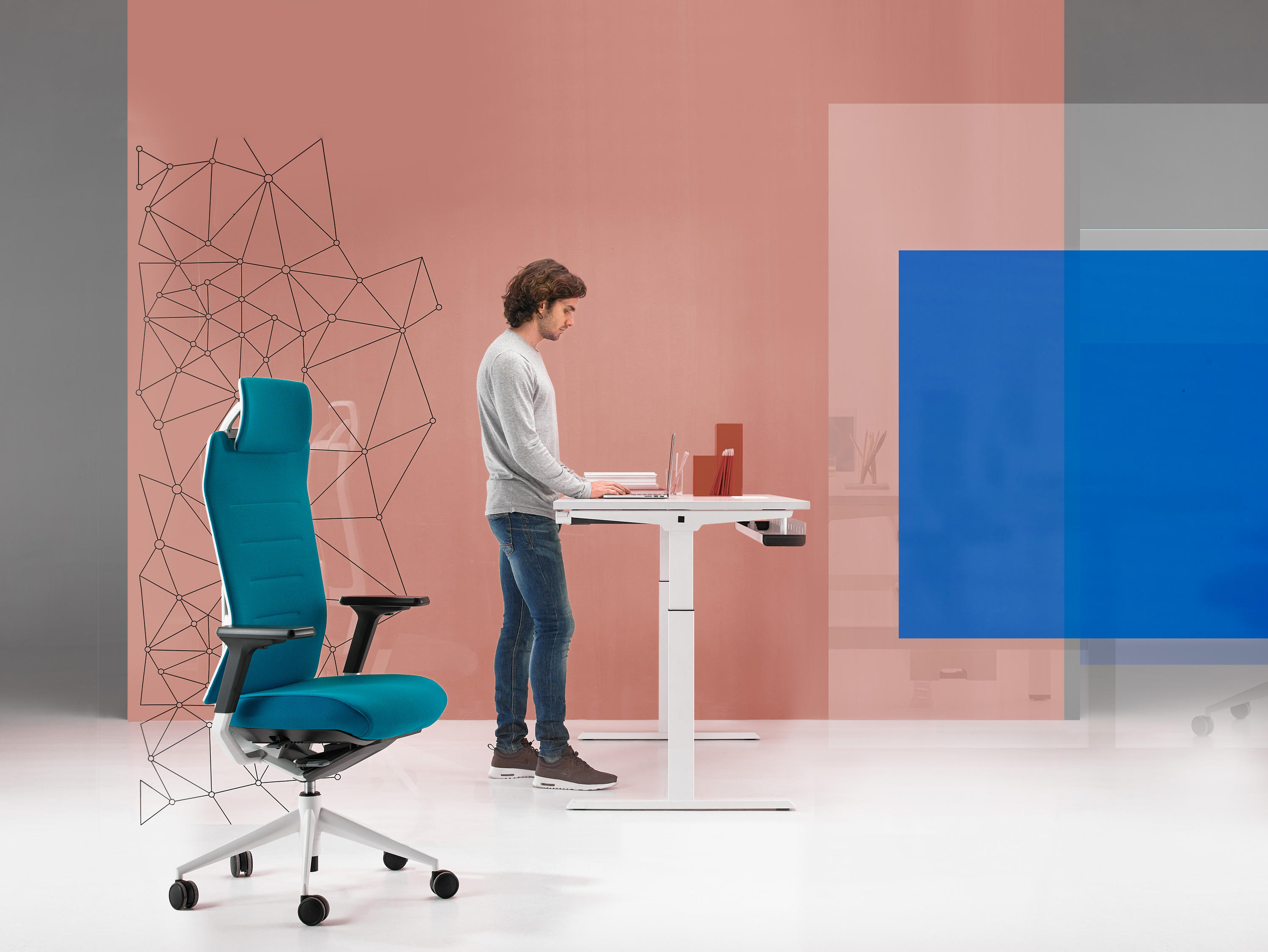TNK Flex为Actiu提供了两项旨在革新办公家具的基本发展:一种基于用户的支持和互动的人体工程学设计。