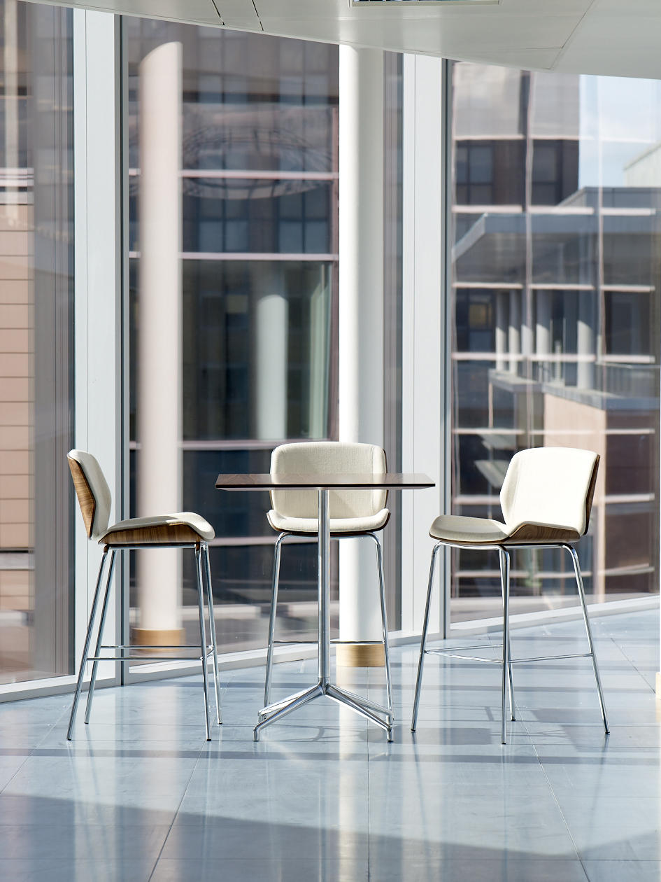 Axis(轴心)桌子非常适合非正式的接待,中庭,会议或休息区。从Boss Design的几个系列中可以看到,Axis是一个细长的抛光铝四星脚基,可以选择夹层或贴面圆形桌面。可作为咖啡、会议或餐桌上的餐桌等适合各种用途。