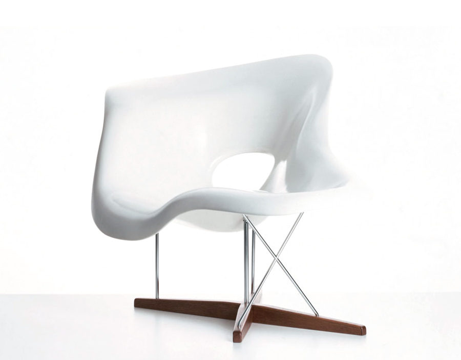 La Chaise 是 Charles & Ray Eames 美國設計夫妻檔,於1948年參加紐約現代博物館所舉辦的 “國際低價家具設計比賽" 的參展作品之一,玻璃纖維的造型結構搭配金屬桿和天然橡木十字基座。時至今日,La Chaise 儼然成為有機設計的經典象徵。