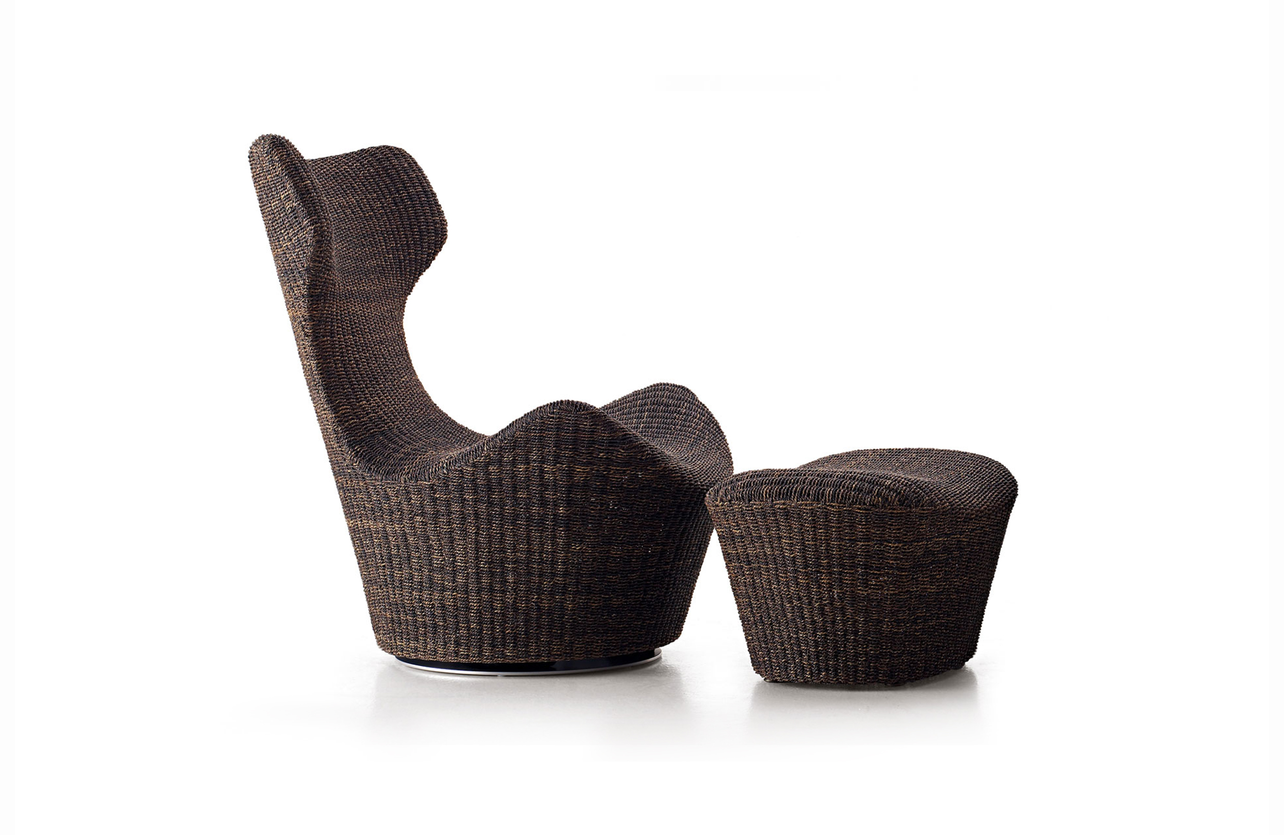 看似由單一材質一體成形的大型雕塑物件,Grande Papilio 流線形的設計從倒置的錐形體中雕塑而來。由下而上漸寬的椅背空間,提供了極致的舒適放鬆體驗。Grande Papilio 旋轉 360° 的底座系統能自由自在的環視空間中恣意流動的美好。強烈雕塑個性特質的 Papilio 系列家具也持續的擴大當中,不同大小和用途的 Papilio 家族:Papilio、Piccola Papilio、Grande Papilio、Love Papilio、Mini Papilio、Papilio Ottoman 提供了多元而完整的舒適空間。