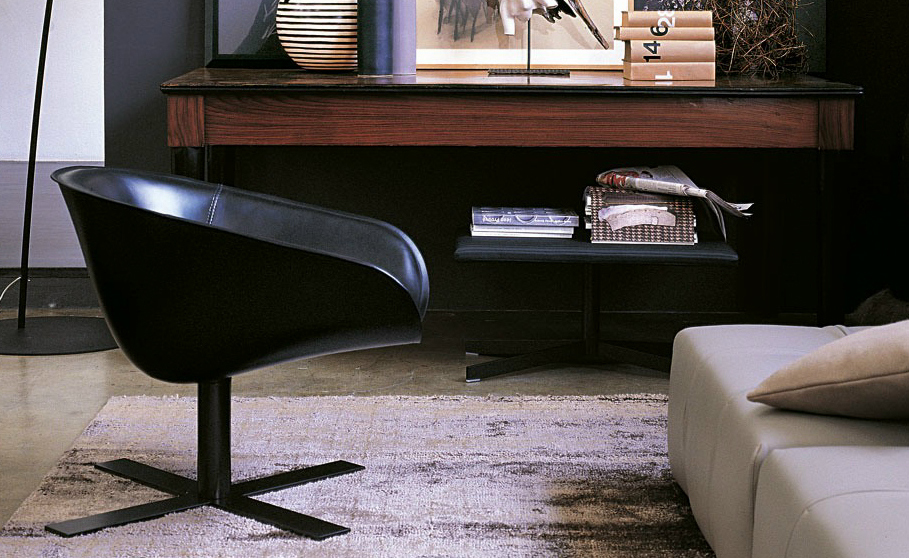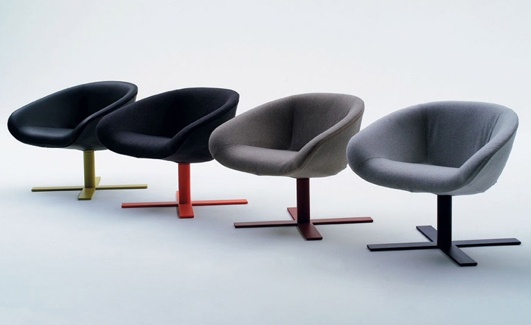 由于一项加热成形皮革生产技术,经过实验以及调研,我们推出了马特椅。它有两种类型的座位可供选择:一个较小的款型和较大的款型。这两种款型的版本都提供一个可旋转圆盘状铝基。面料可选黑色纤维织物或浸漆皮革。还有一种类型的脚架是十字形的。脚架镀明亮的铬抑或黑色涂漆不锈钢。它们都配有脚轮,可转动,并配以舒适的坐垫,坐垫为热成形皮革或者纤维面料。