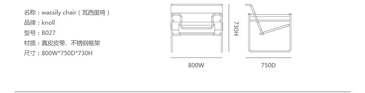 马歇.布劳耶(Marcel Breuer)是世界上第一个用钢管制造椅子的设计师,他成功设计出这张椅子,为了纪念他的老师瓦西里.康定斯基,将这张椅子命名为“瓦西里椅”(Wassily Chair),这张椅子作为重要的作品,收藏在美国现代艺术博物馆MOMA。