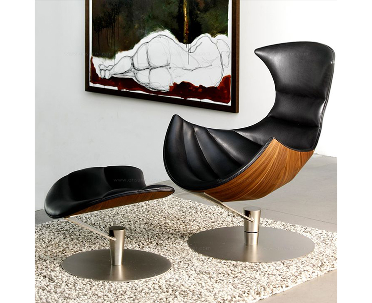 丹麦著名设计师Oluf Lund & Eva Paarmann设计的这款龙虾系列包含,Lobster Chair(龙虾椅)、Lobster Ottoman(龙虾脚踏)及组合搭配Lobster Chair and Ottoman(龙虾椅&脚踏)。此款椅子造型就像一只龙虾,采用优质夹板压模贴木皮而成、进口头层牛皮、内部填充高密度海棉、优质不锈钢脚架制成,简约立体的流线融入符合人体工学及空气动力学的结构设计,摆脱传统办公椅单调冷硬的刻板印象,达到舒适久坐的基本需求。