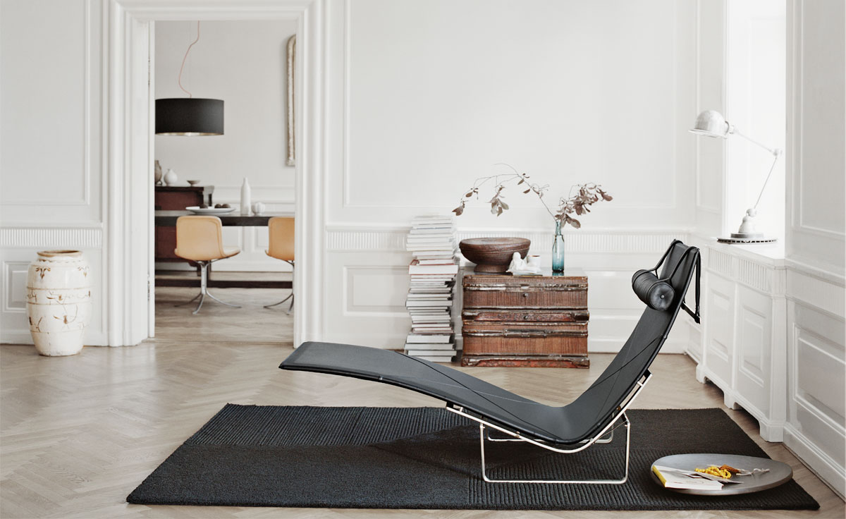PK24 Chaise Longue Chair(PK24休闲躺椅)是著名的设计师 Poul Kjaerholm设计的经典作品,是Fritz Hansen公司的“Poul Kjaerholm系列”之一。 PK24躺椅(PK24 lounge chair) 是一款经典设计,功能结构的底座结合优美悬浮的座位,椅子的主要部分没有物理上的连接,但并没破坏整体设计的平衡和稳固性。覆盖牛皮的座垫包装了舒适的躺椅特征。带有曲线的不锈钢架为座垫提供了稳固的支撑,同时带来艺术美感。