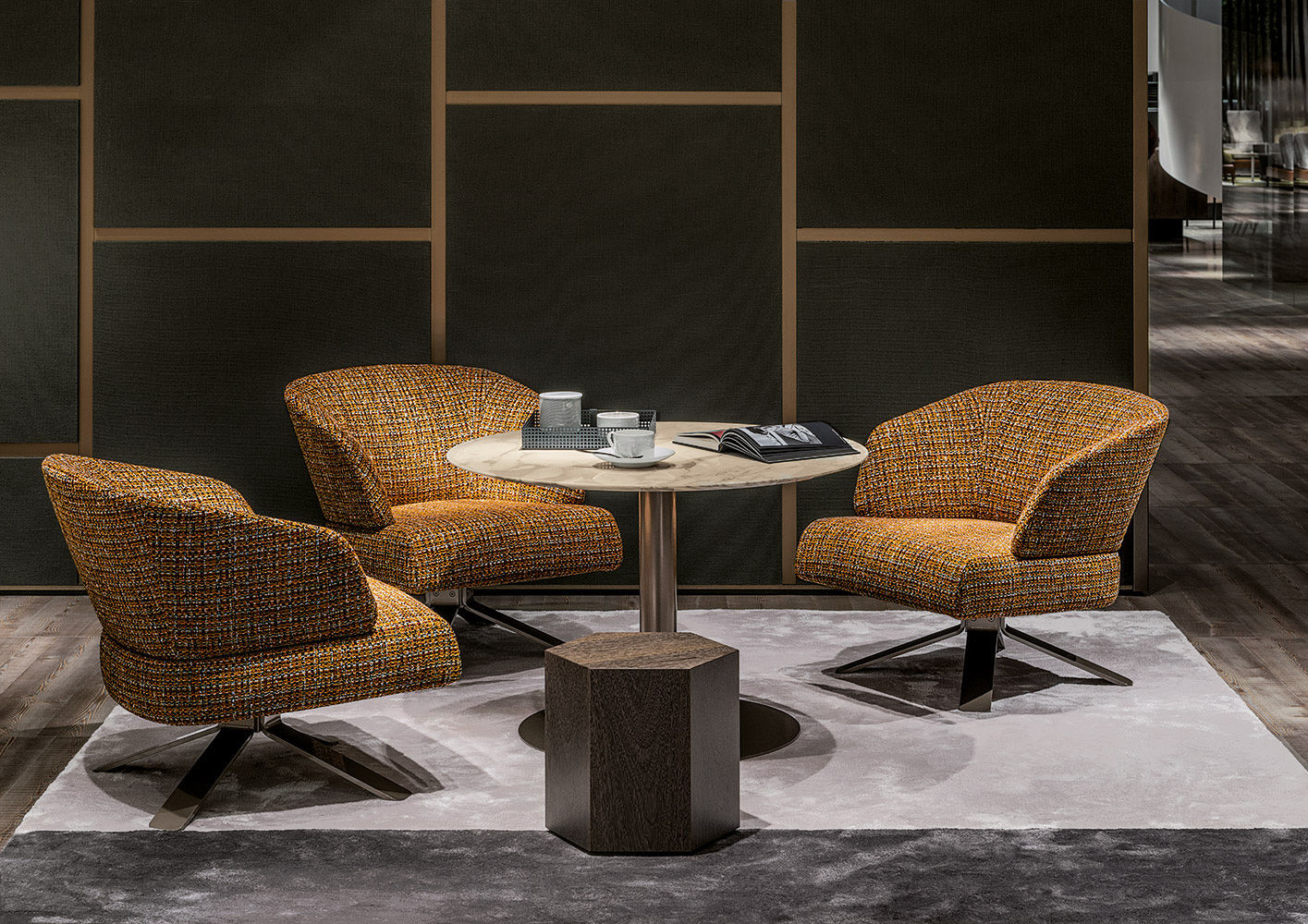 Creed沙发系列极具个性风格,搭配2016系列中的各类产品均能达到相得益彰的效果,尤其是与Bellagio “Lounge”桌搭配,两者的组合可以打造出别具一格的环境氛围。Creed家族成员包括多款沙发椅,每件产品在设计时都考虑到其摆放的精确位置,同时兼顾用途和风格的和谐统一。Creed系列产品的比例设计精益求精,因而不仅可以和谐地融入居住空间,还可以用在接待场所,如等候室、前台区域、行政办公室。饱满而又舒适的造型,精致的表面包覆,一丝不苟的细节,这些就是Creed “Lounge”沙发的特质所在,使其成为居住空间的主角。