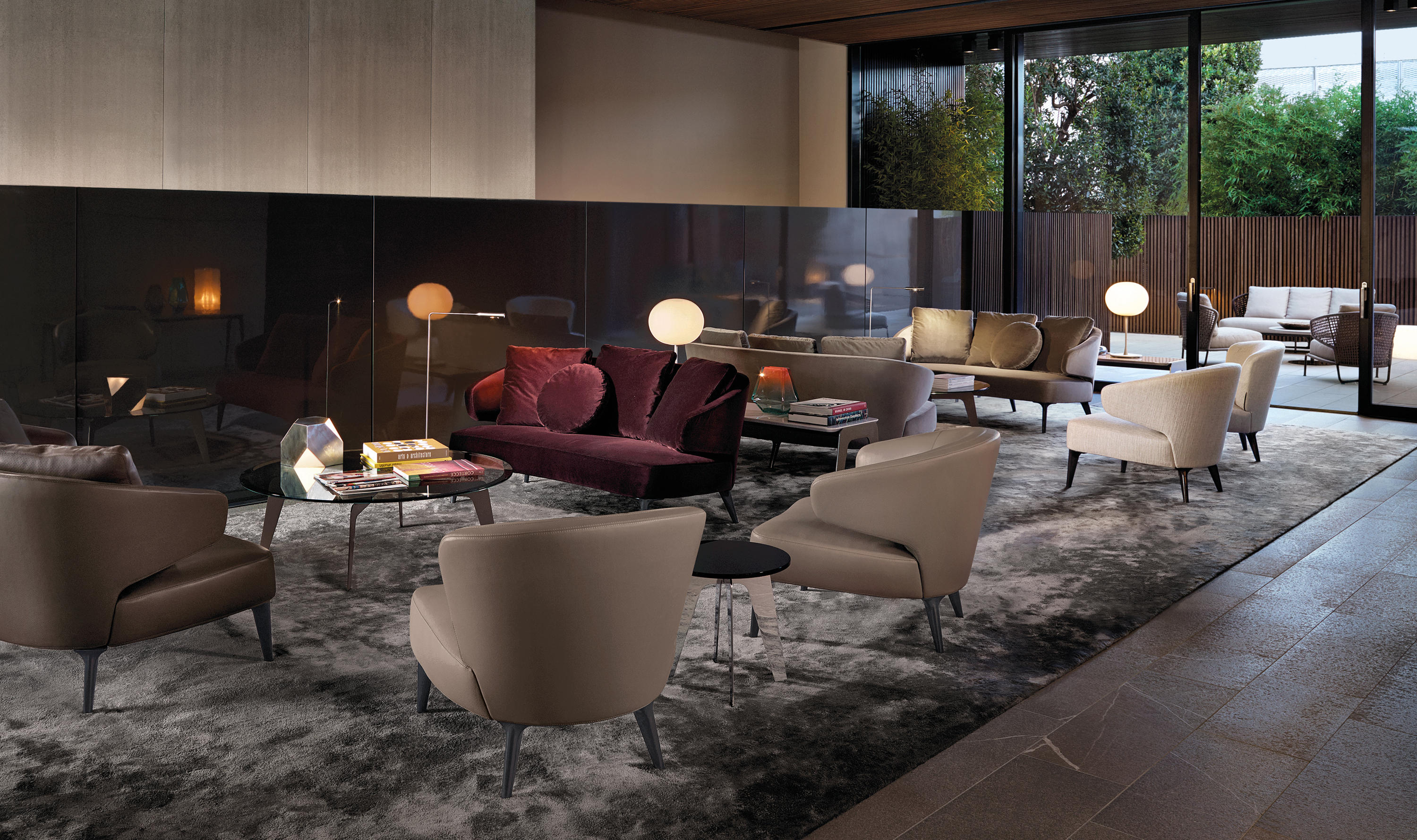 阿斯顿沙发、靠椅、脚垫与坐卧两用沙发拥有呼之欲出的复古韵味,结合唯美线条、轻盈廓形与精准封套,淋漓尽致地展现出超凡卓绝的手工技艺。