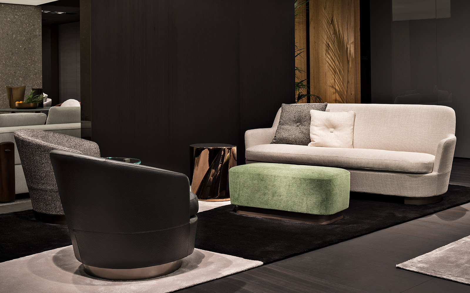系列中的所有沙发座椅都拥有环抱式的线条,柔软的座椅和靠背带来温馨愉悦的感受。 完美的造型和无可挑剔的覆面体现了源于公司多年经验的高水平技艺,充分展现出坚实的工艺水准。