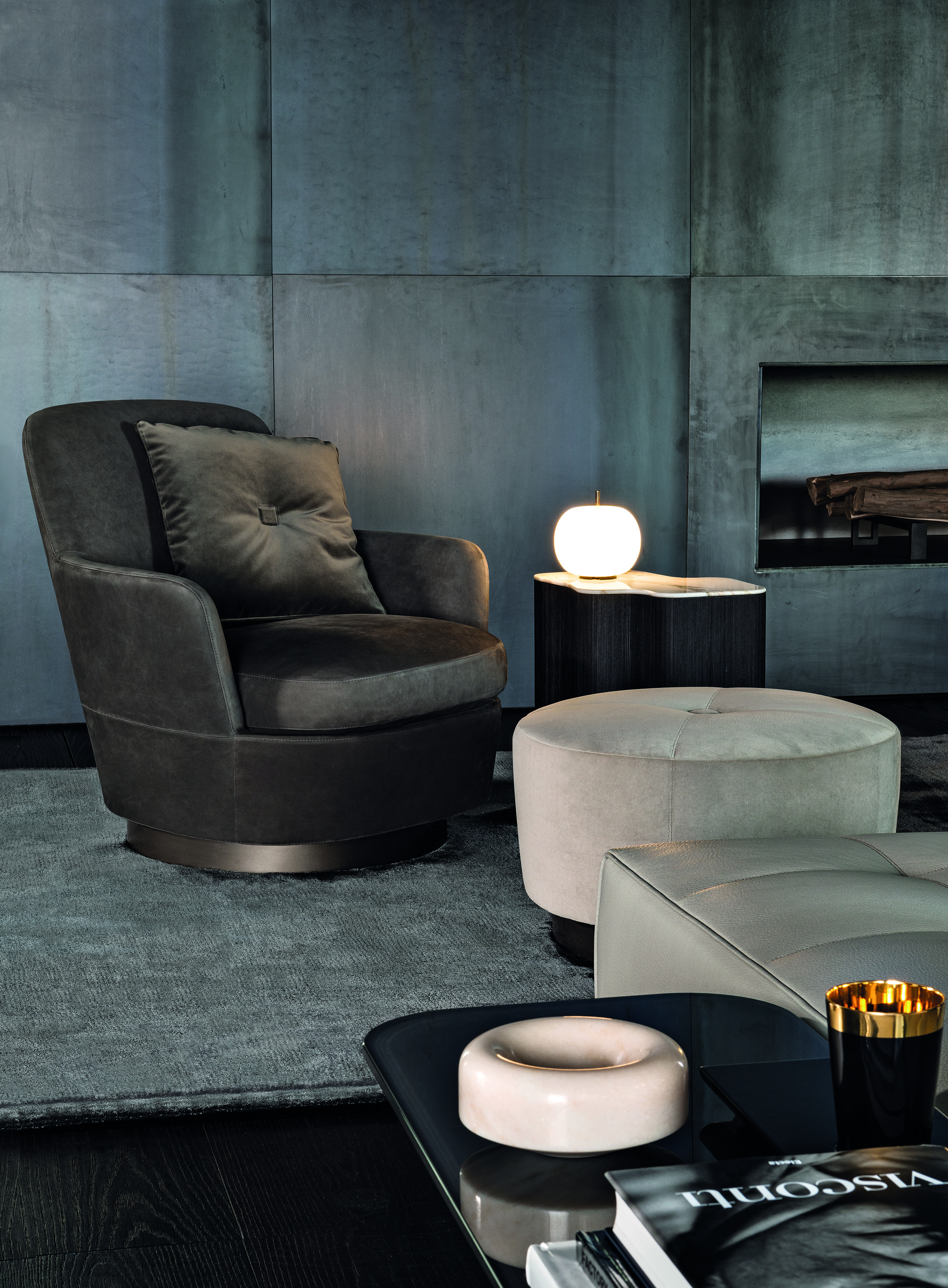 底座可以旋转的Jacques沙发拥有柔软的坐垫和靠背,带来绝佳的舒适感,尤其适合打造休闲放松的空间,可以搭配Song边几和脚凳,达到相得益彰的效果,边几不仅可以用来放置台灯,也可以用来放置各种小物件。