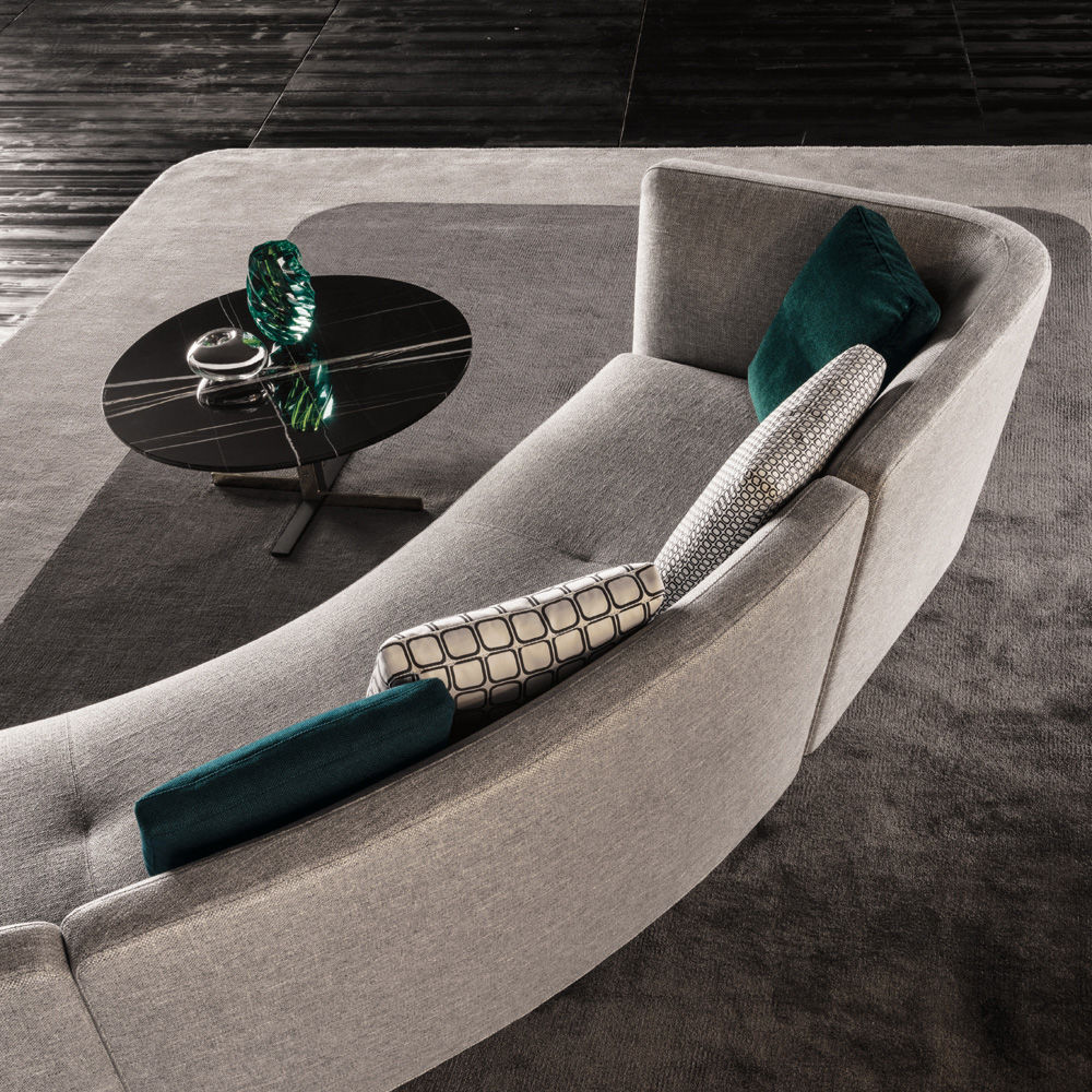 这组边几系列简洁洗练,材质的选择展现出精致的典雅。如果说Catlin边几的设计崇尚简洁,那么材质的选择则旨在打造非凡的视觉和触觉效果。金属基座有着精致的十字形地面支撑腿,其中包括颇有趣味的组合:黑色压花搭配铬色或金色的抛光表面,打造出多种多样的风格。材料的搭配体现出非凡的优雅感,台面可以选择烟灰色的玻璃材质,或是选择两种珍稀名贵的大理石,Arabescato Purple或Sahara Noir,两者都拥有抛光表面。Catlin系列有圆形和椭圆形两种造型,有不同的尺寸可供选择,正如边柜和餐桌一样有多种类型。