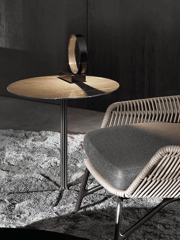光线茶几是由其薄的厚度和空灵的结构来定义的,光线表是由顶部以不规则或圆形的有机形状完成的。这个放射状的底座,由一捆金属杆组成,可以垂直折叠起来,支撑顶部,在大理石或木头上。