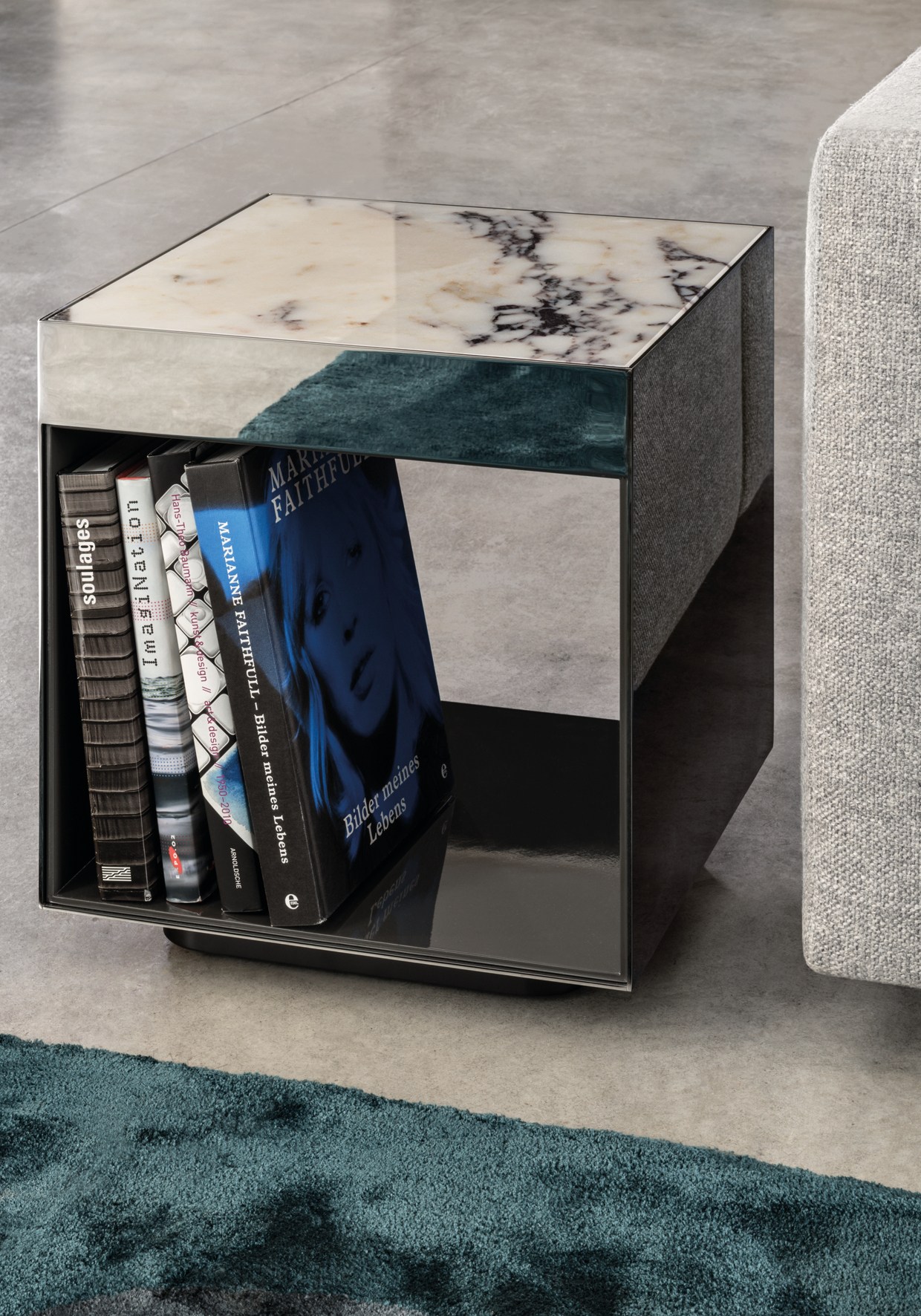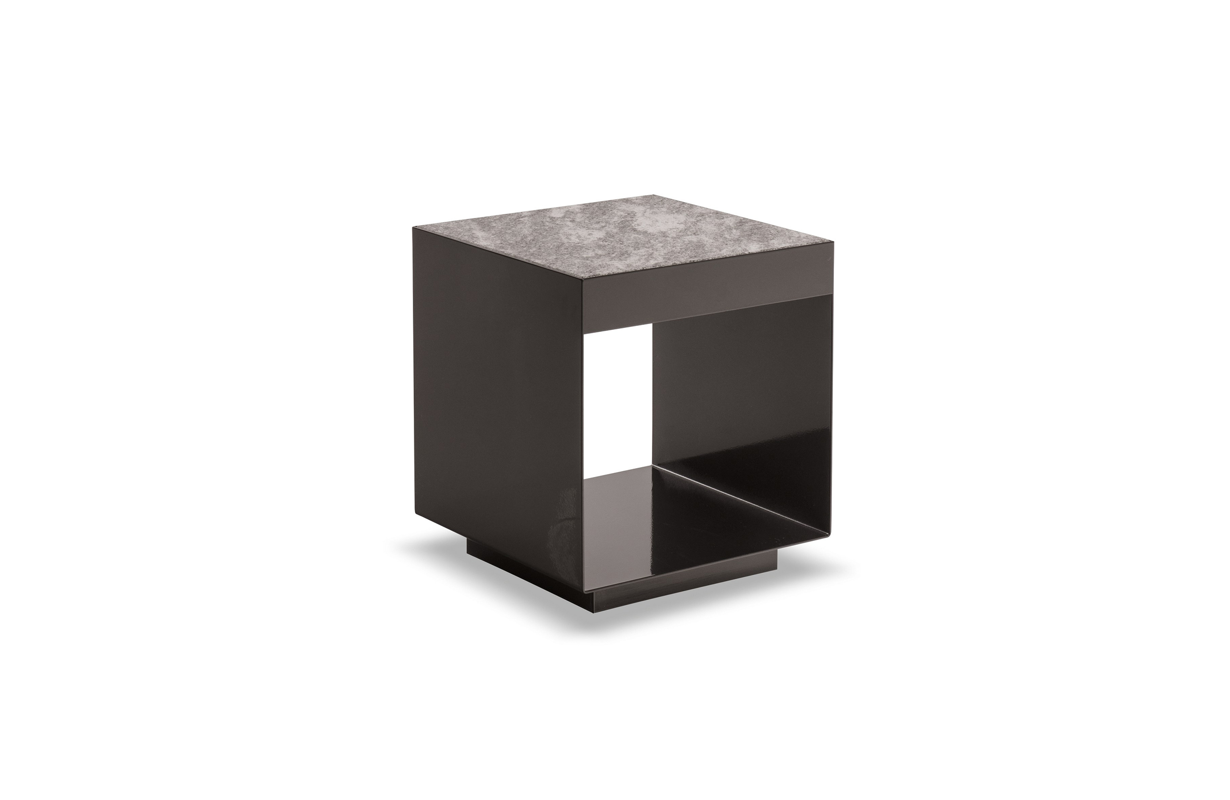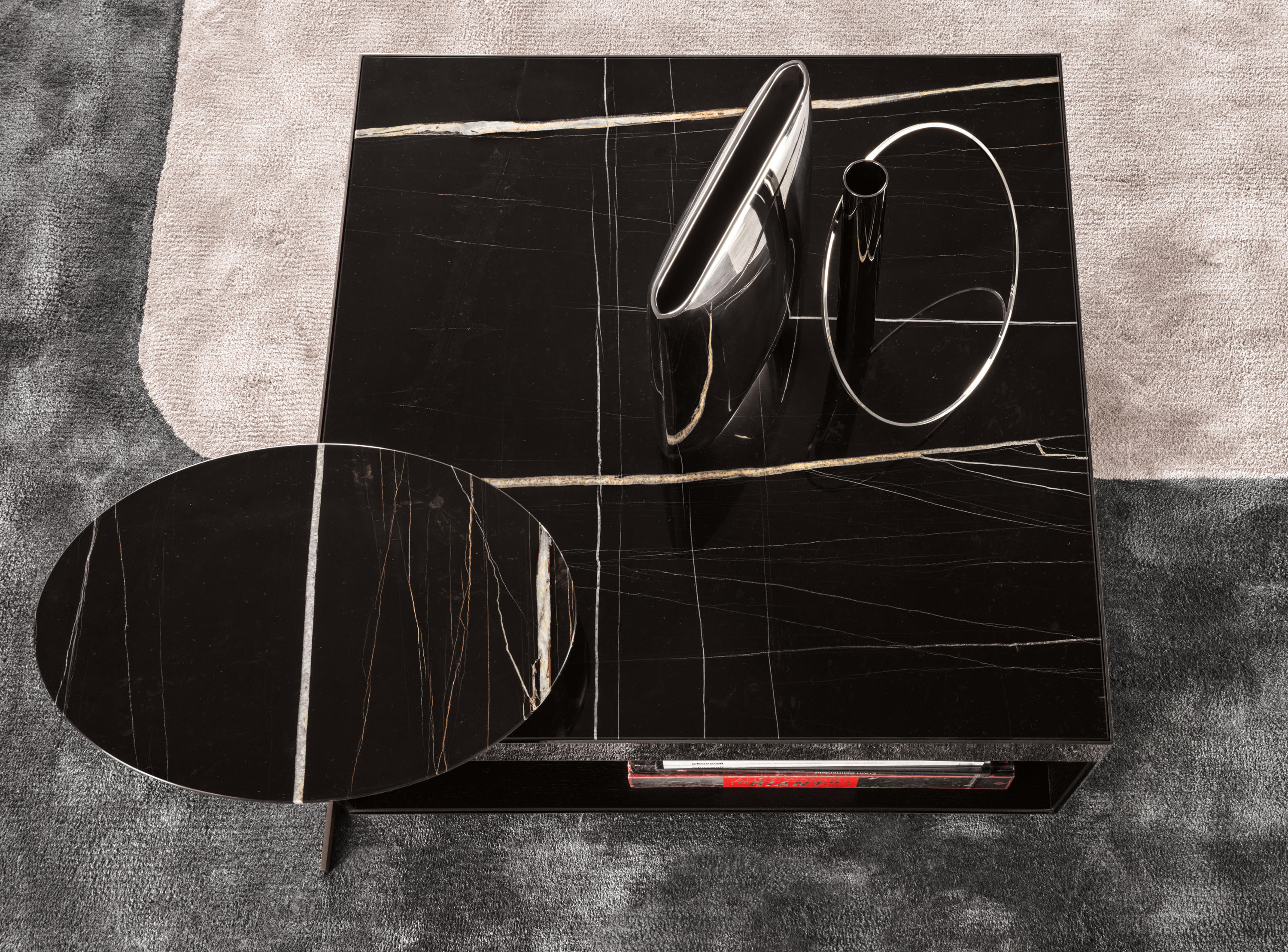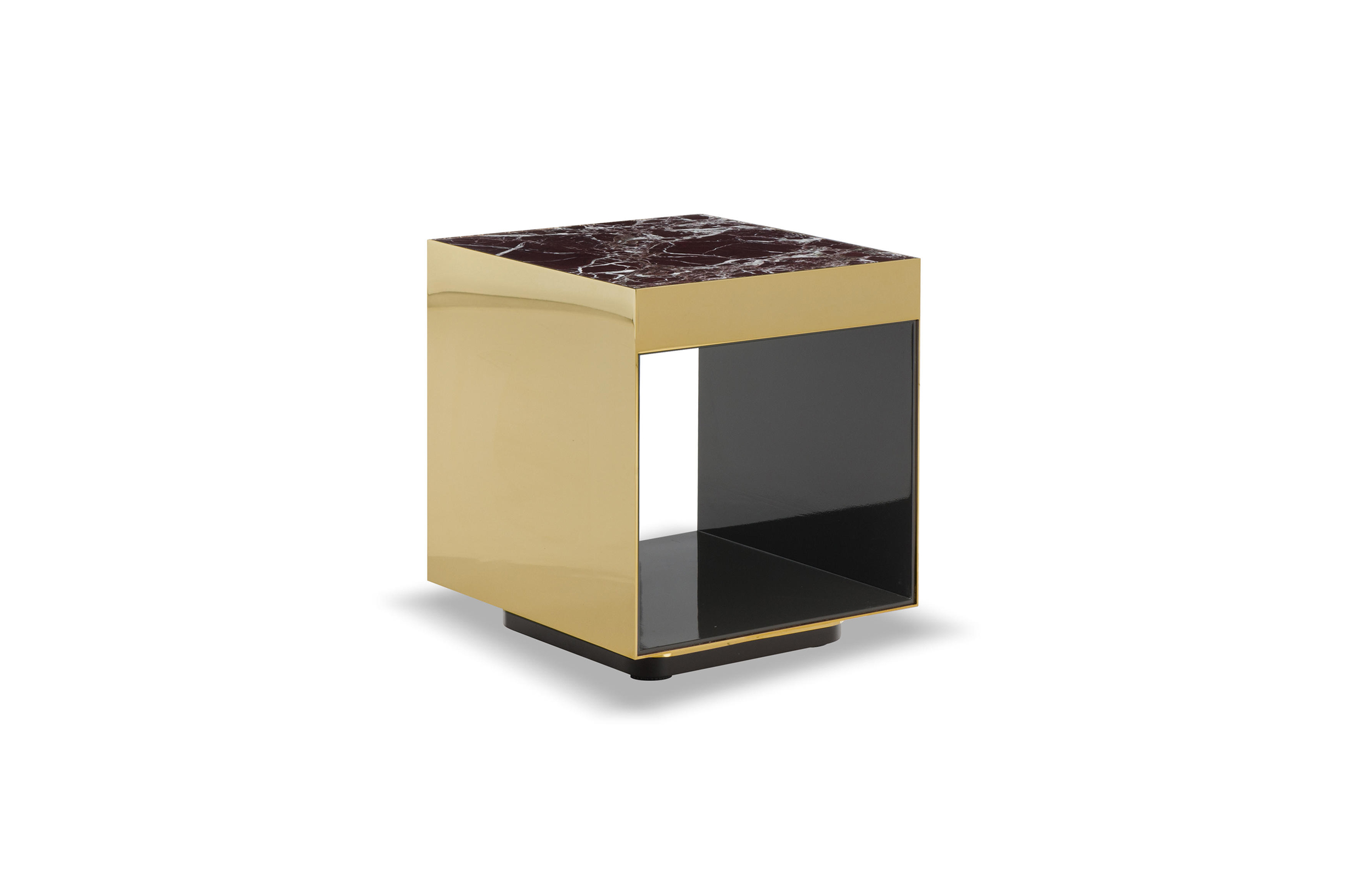 这是用于收纳贵重物品的边几系列,拥有纯粹而简洁的美学设计,有着精美绝伦的多种材质组合。这一边几家族拥有华贵的美学特质,因而也有着非同一般的功能,在提供实用置物表面的同时,呈现精美的装饰效果,具有50年代和60年代的米兰设计风格。金属构架的表面有亮铬色、亮金色和亚光铜色,嵌入构架的台面可谓画龙点睛,选用多种珍稀的大理石材质,其中包括Arabescato Purple、Sahara Noir和Rosso Levanto,或是Moka色的白蜡木、Moka色橡木。从建设性的角度来看,Elliott边几的内部储物空间可以用于摆放杂志或其他物件,有花岗石色的亮面漆或Moka色开孔橡木可供选择。金属材质的外部框架搭配包覆木质的内部框架,以此可以看出工艺的复杂性,同时平添一份温暖的质感,展现Elliott边几的名贵特质。