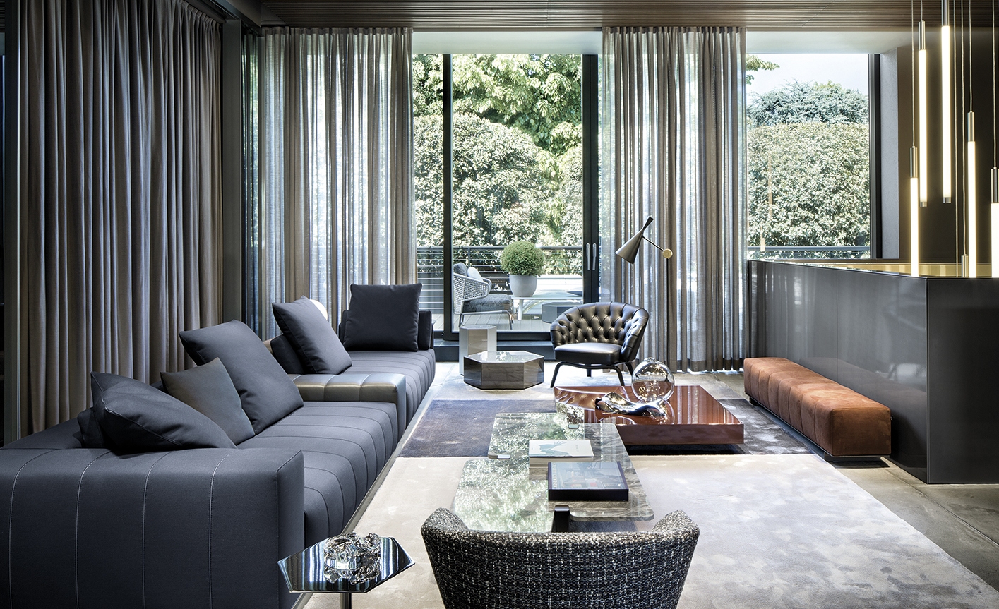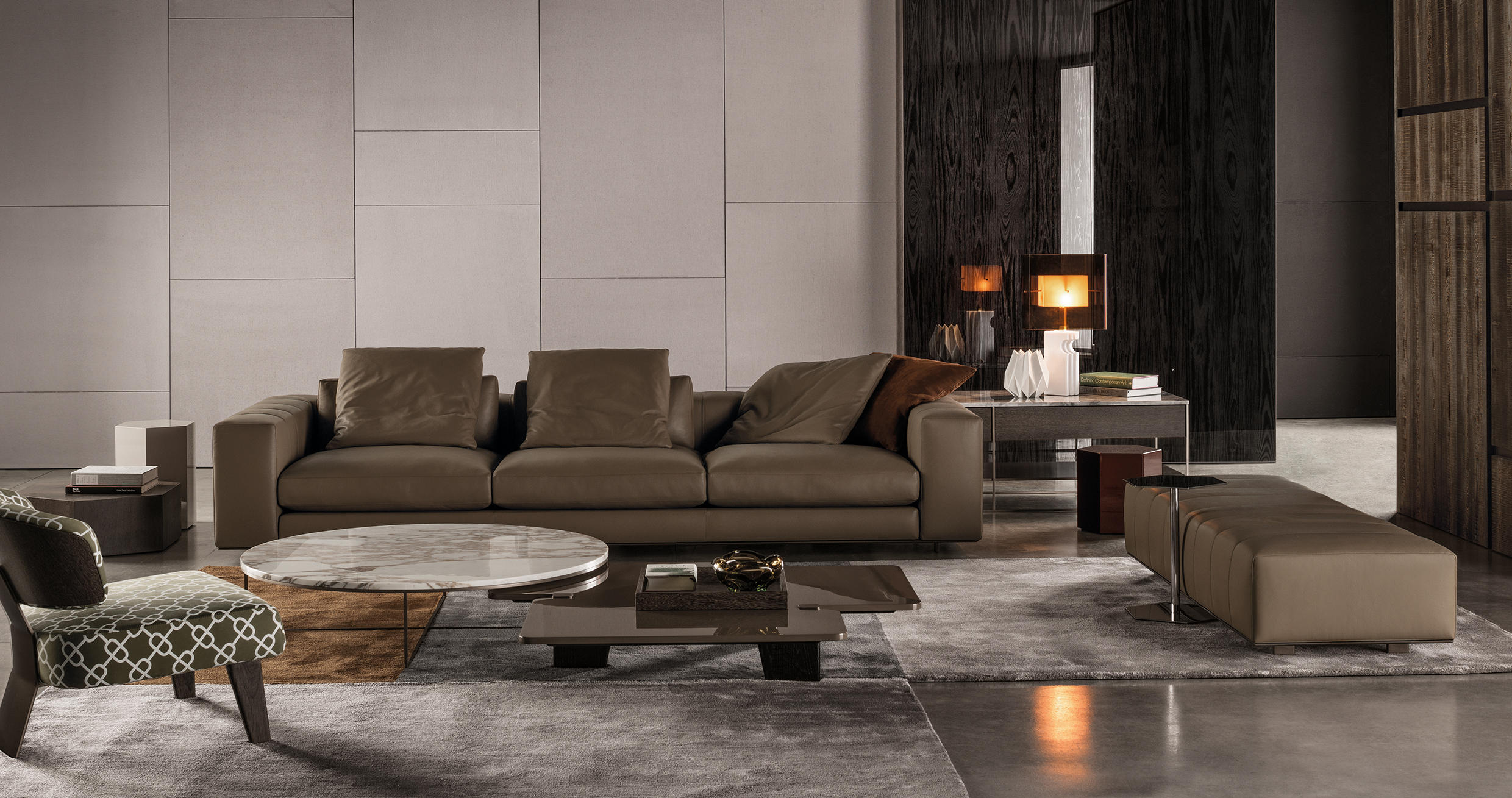 这一系列专为打造居住空间的实用元素而设计,布里斯莱边几具有独特的个性。基座和桌面是完全对称的六边形,这也是2016系列的主旋律之一,镀铬金属材质则突出其利落的个性。布里斯莱推出两个版本:一款是基座和桌面对应的六个角分别用细杆连接,另一款是由中心位置的镀铬金属杆连接基座和桌面。布里斯莱是一款多用途的边几,可以随心所欲地搭配Minotti产品系列中的所有沙发和扶手椅。