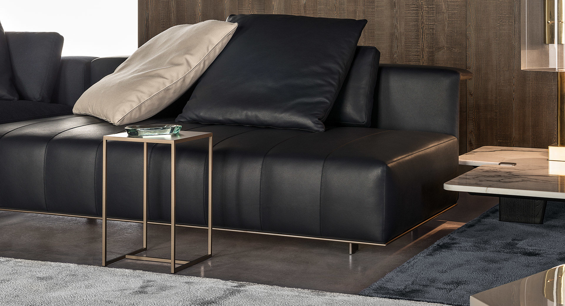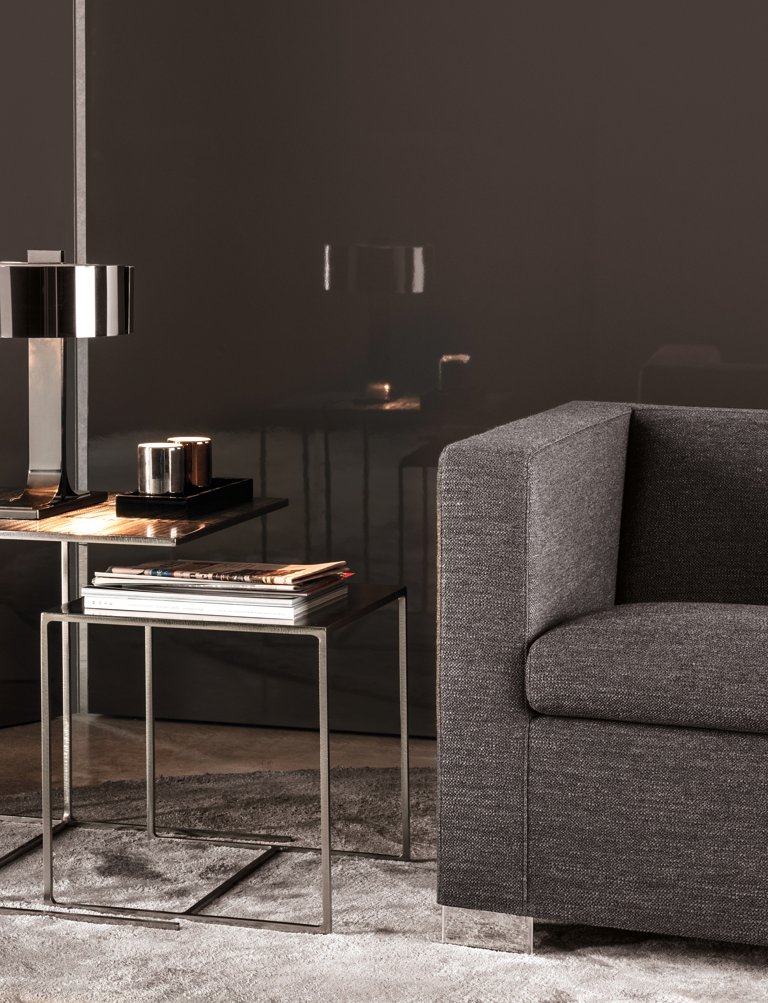 杜尚系列的边几采用纯粹的极简设计,功能多样,可以随心所欲地搭配Minotti产品系列中的所有沙发座椅,如今推出了亚光浅铜色漆面的金属版本。