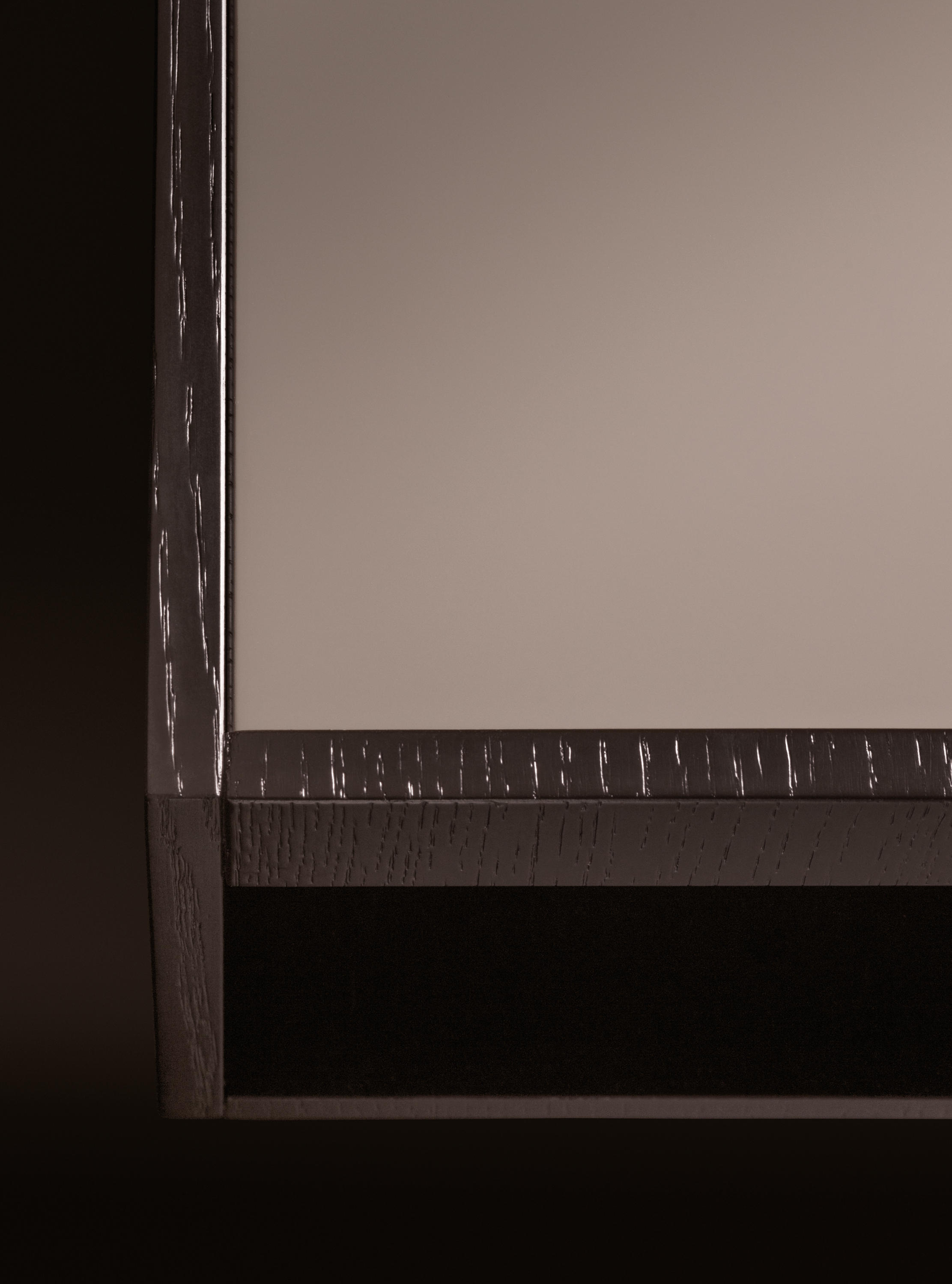 克洛塞边几特别为搭配Yang沙发系列而设计,拥有实用的置物表面和收纳空间。Close边几的理想位置可以是在靠背椅和Yang沙发之间,提供使用的置物表面:每件要用的物品近在咫尺,或是整齐地摆放在下方的收纳空间中,您可以在沙发上尽享放松时光。基座采用十字的简洁造型,采用金属制成,搭配亚光铜色表面。上方部分的置物空间采用前后皆可用的开放式设计,并且搭配一个可取下的托盘,有两个版本可供选择:一种是构架为Moka色漆面的开孔橡木,上方面板为粘土色亮光漆,内部的托盘为粘土色亚光漆;另一种是构架为粘土色亚光漆,上方面板和内部托盘为Moka色漆面的开孔橡木。除了不同尺寸的边几以外,Close系列还包括边柜、写字台和床头柜。