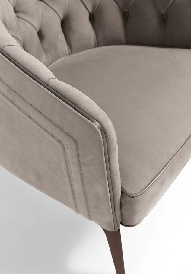 La lavorazione capitonné, di antica tradizione artigianale, impreziosisce questo modello di classica eleganza
