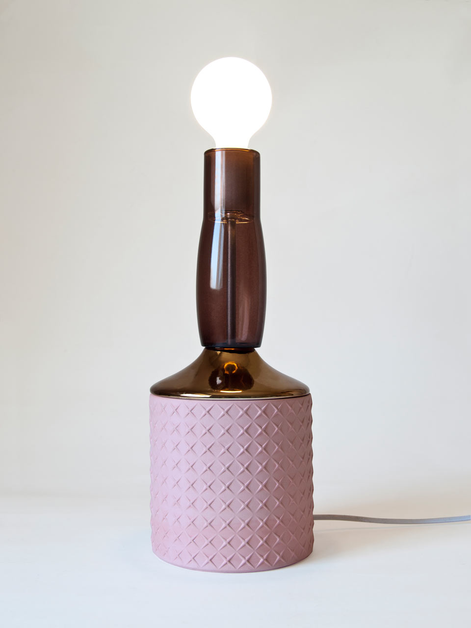 造型如复古的瓷器,带有软木材质的自然材料,可以协调和放松照亮您的环境,长200cm的彩色织物电线,可以在房间中自由移动和放置。