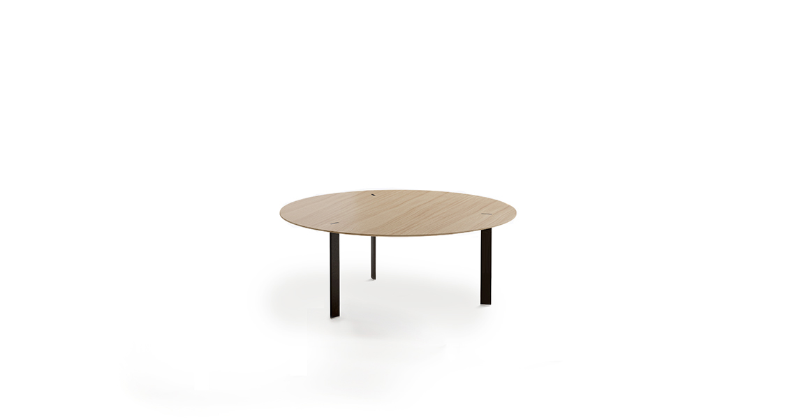 桌面采用漆面MDF或橡木贴面,由Viccarbe提供的饰面和带透明尖端的漆钢腿。