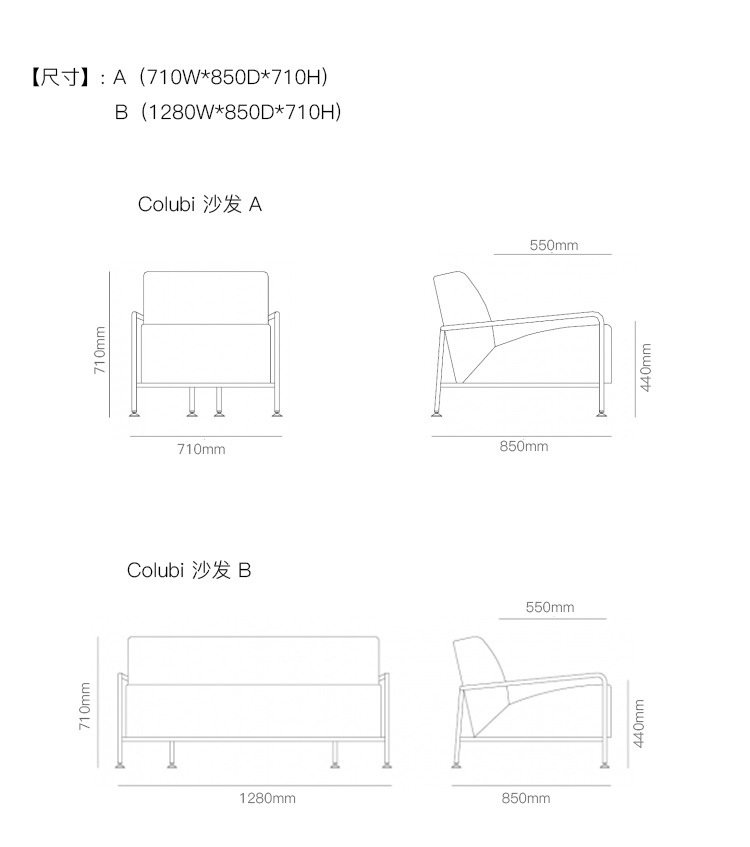 Colubi 沙发 系列尺寸/示意图