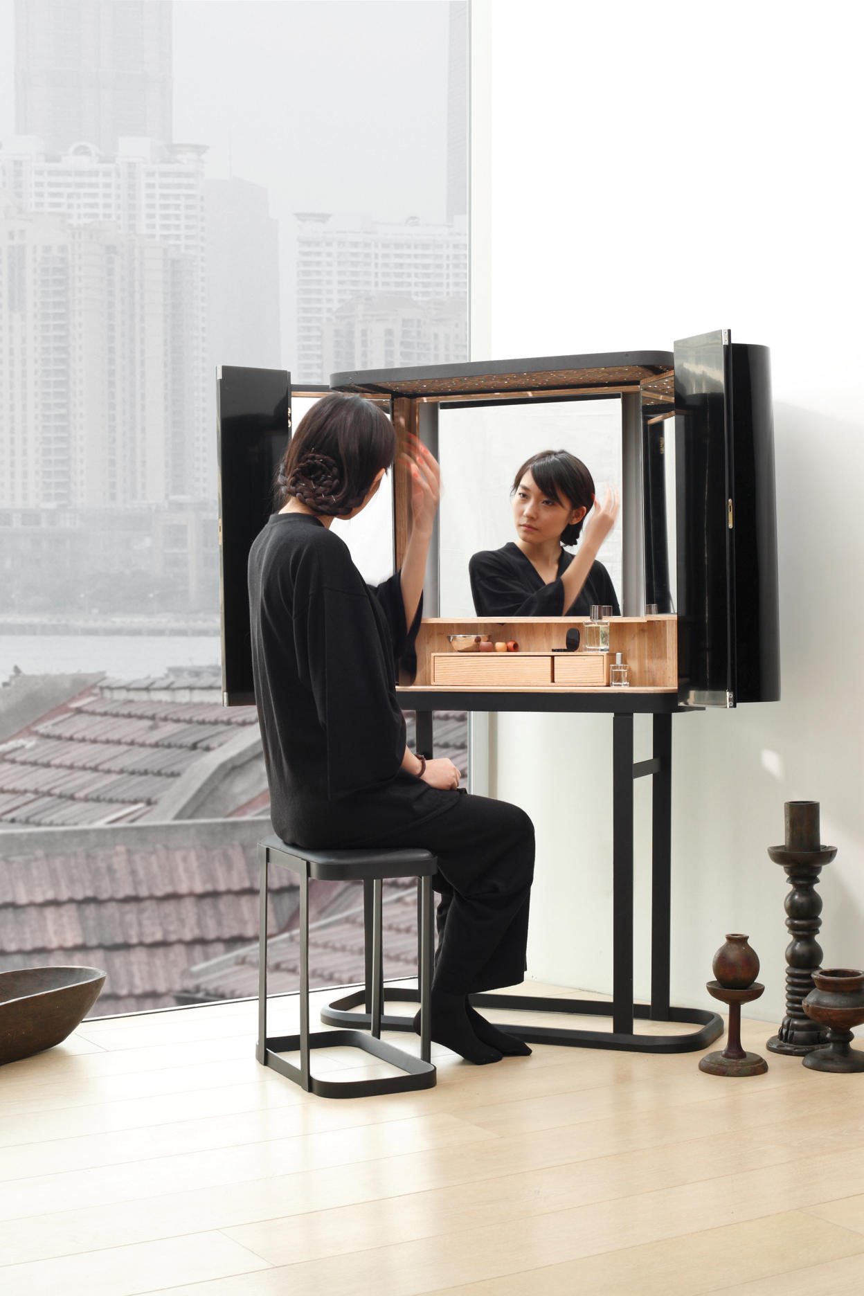 Lyndon Neri和Rossana Hu是NERI&HU;他们在上海拥有自己的工作室NHDRO,代表着中国第一代具有才华和个性的建筑师和设计师。 他们很年轻,在美国接受过培训,并返回亚洲巨头,希望改变“中国制造”的含义。他们为BD设计的“自恋者”系列就是一个例子:在中国设计并在巴塞罗那制造。世界似乎相反,但这只是未来的一个例子。Lyndon和Rossana的作品体现了西方当代设计特征与传统东方根源的融合。这是梳妆台,这是一种家具,在东方文化中很常见,有灭绝的危险。