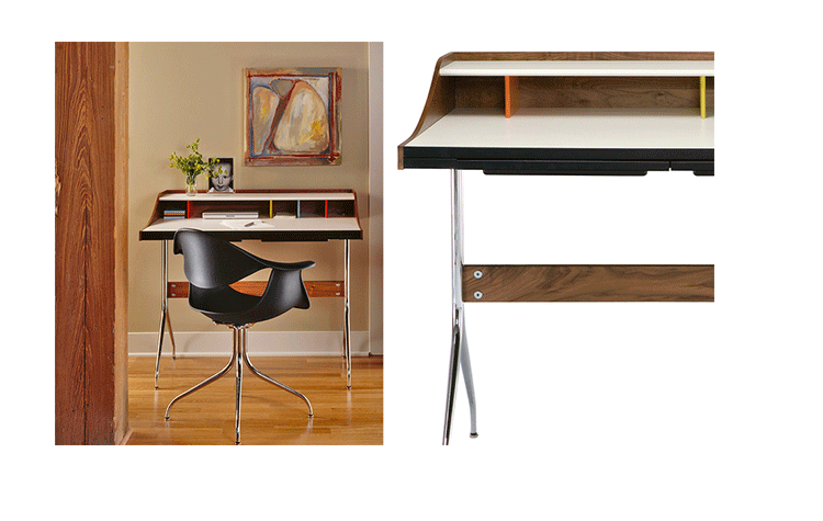 neil desk(尼尔桌)简直是艺术家的梦想--明亮的白色工作区与多彩的金属和木头混合的特征,有着迷人的中世纪设计风格。它是一个永恒的设计,可以使用在任何家庭的办公室。制作采用精选MDF板基材胡桃木或水曲柳木皮贴面、实木脚架、环保油漆喷涂,做工精湛,品质一流。