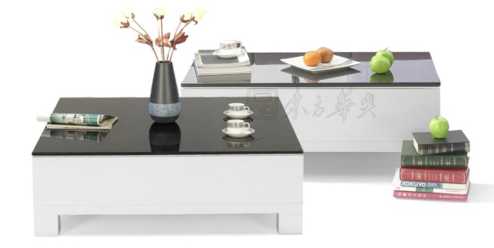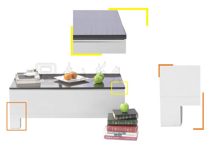 ※ 上部黑色部分为黑色天然大理石,抗压强度较强,可达300MPa,吸水率较小,耐磨不变形。下部木面油漆茶几底架,简洁大方。