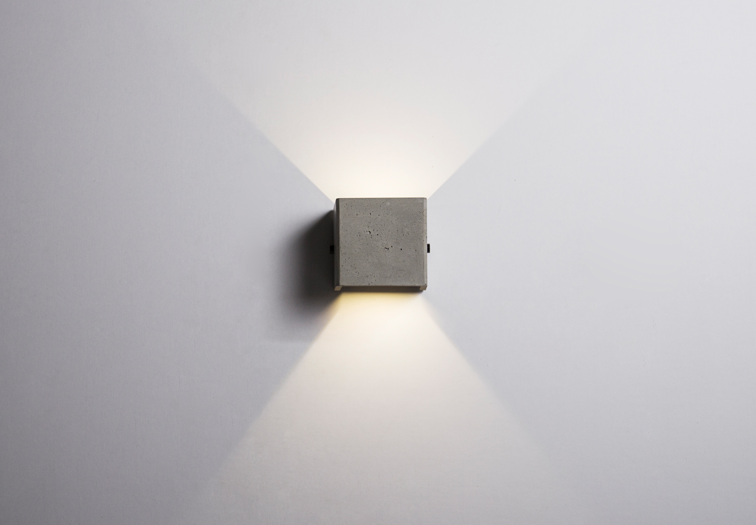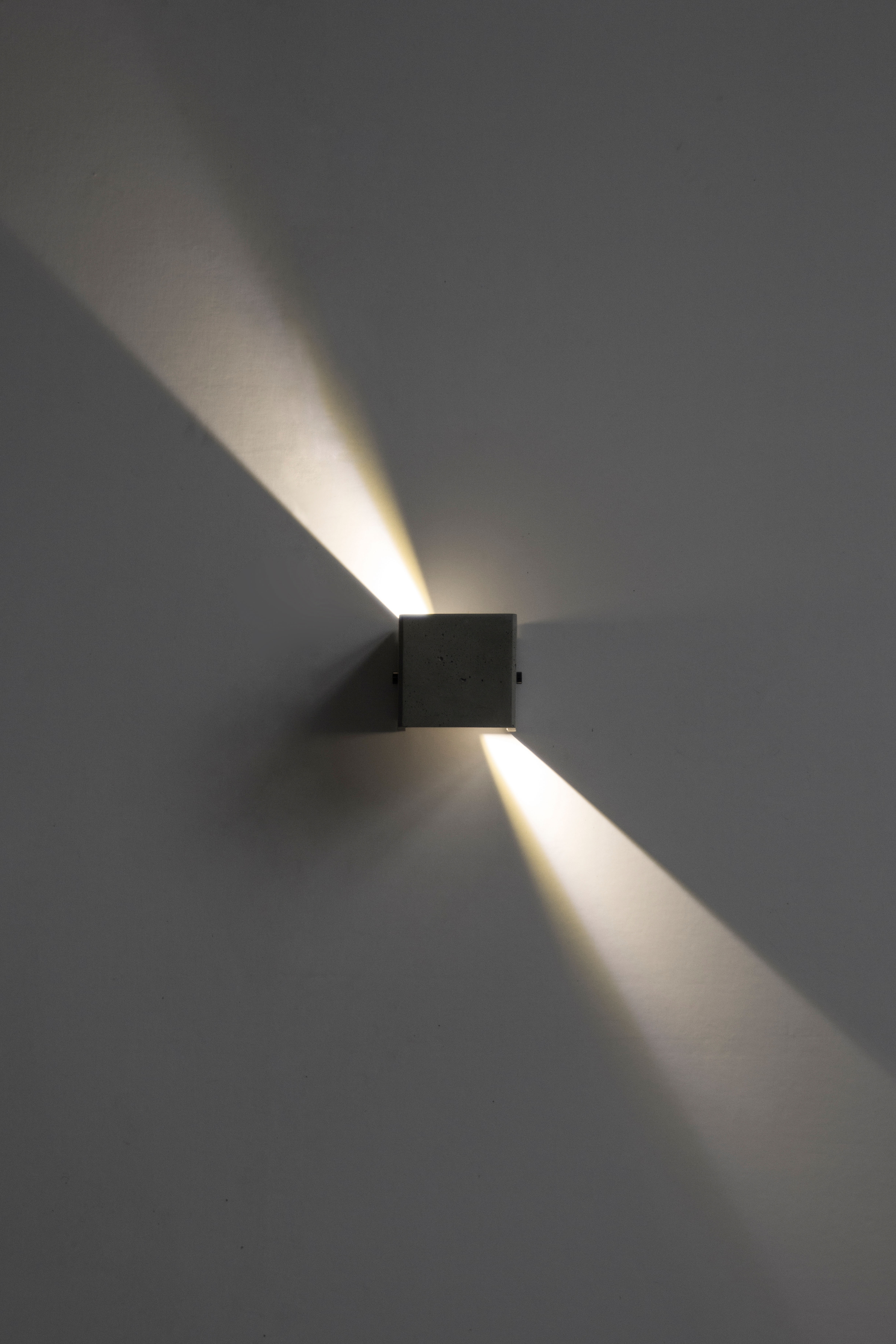 "V"壁灯可室内与户外兼用,防水等级 IP65; 内含挡光黑色金属片可以自由调节光线方向,呈现的光影效果丰富多变。