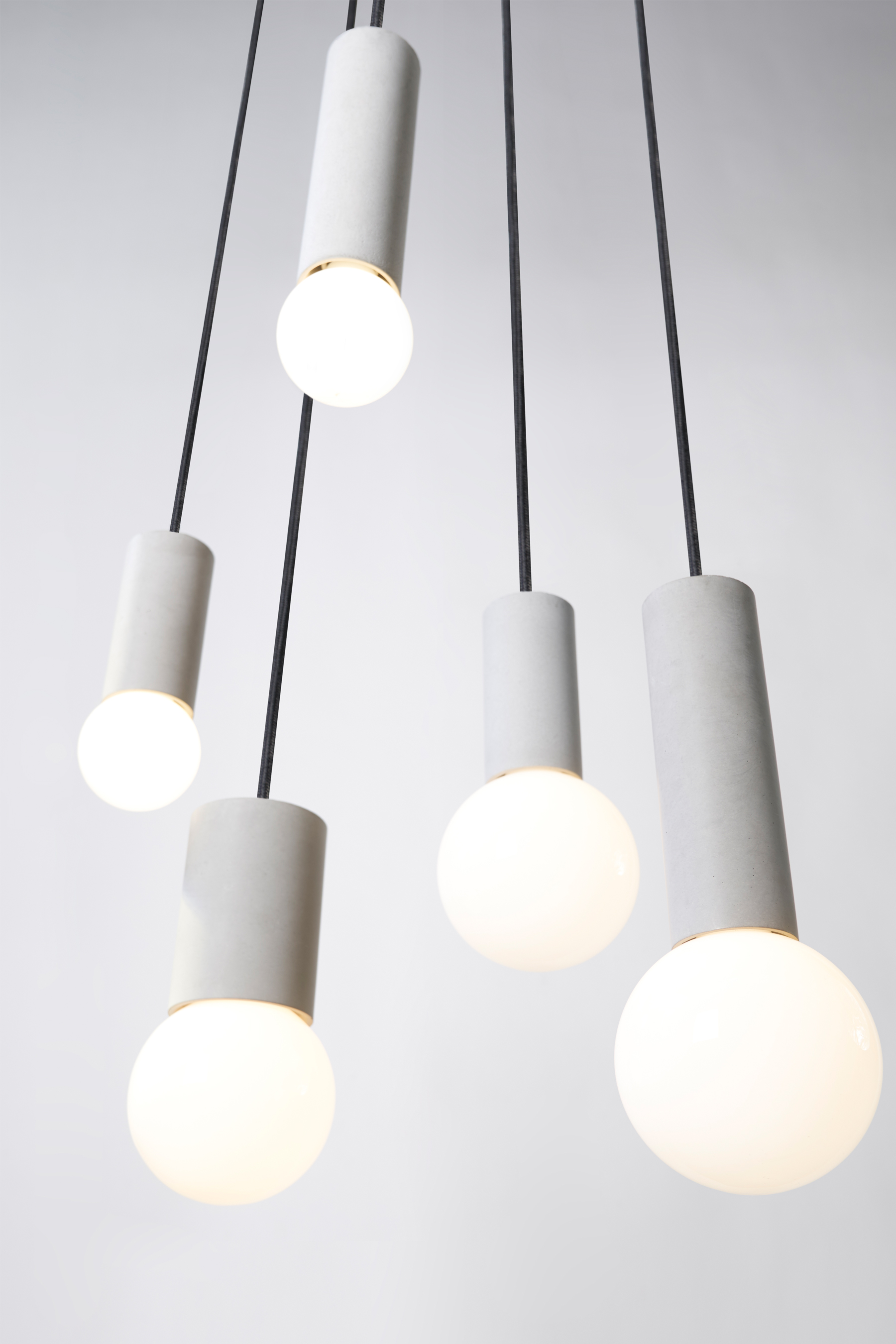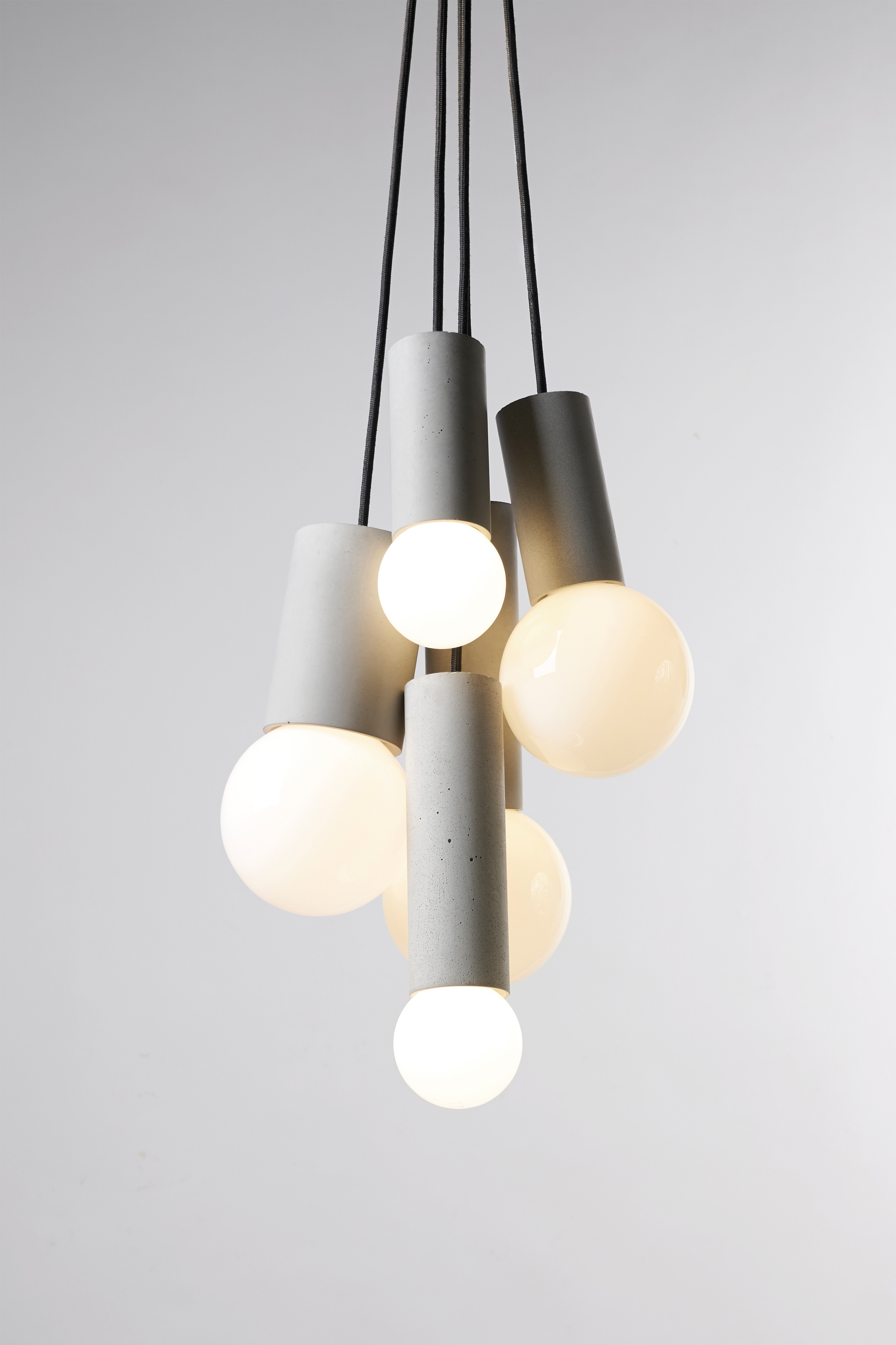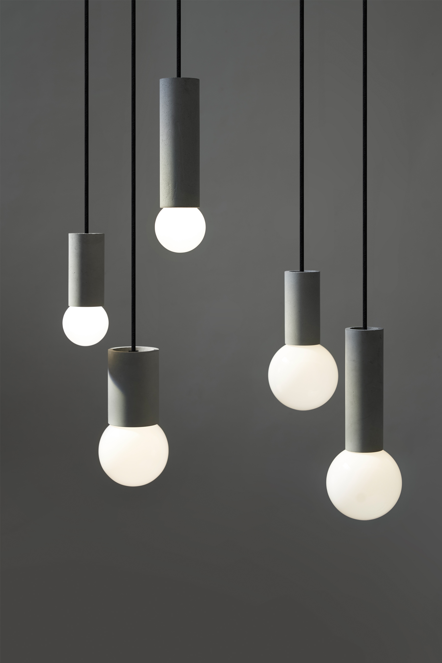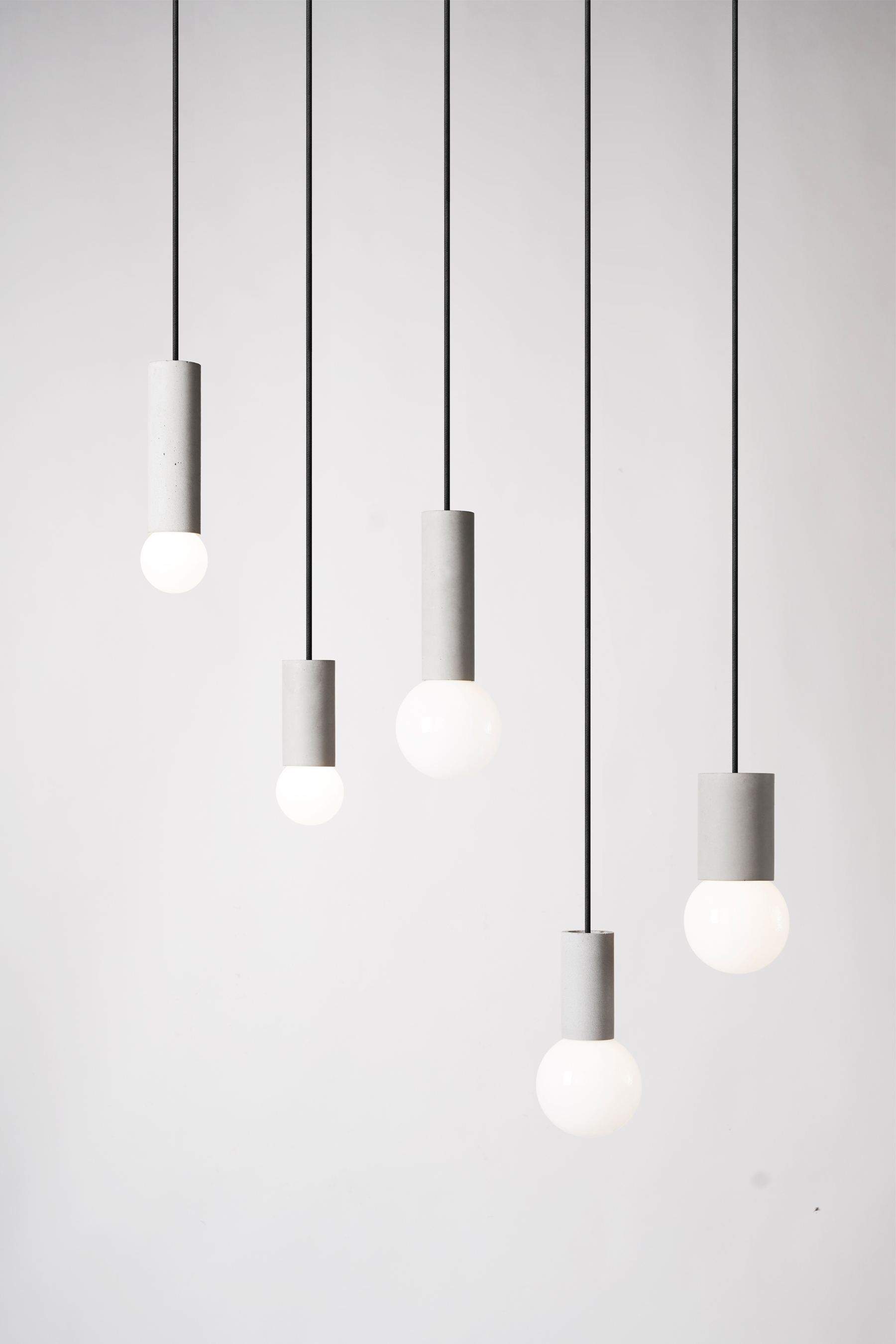 球系列吊灯 —— 回归设计上的纯粹干净和对细节的追求,细腻的清水混凝土孔洞肌理和极简的外型赋予这类常见的商业空间用灯独特的艺术品气质。 五个灯身尺寸皆可适配E27接口的不同规格灯泡,方便用户自行更换。 建议使用环境:适用于室内中心区域装饰,如沙发区域/大型餐桌区域/天花较高区域。至少2~3个成组会比较有效果。