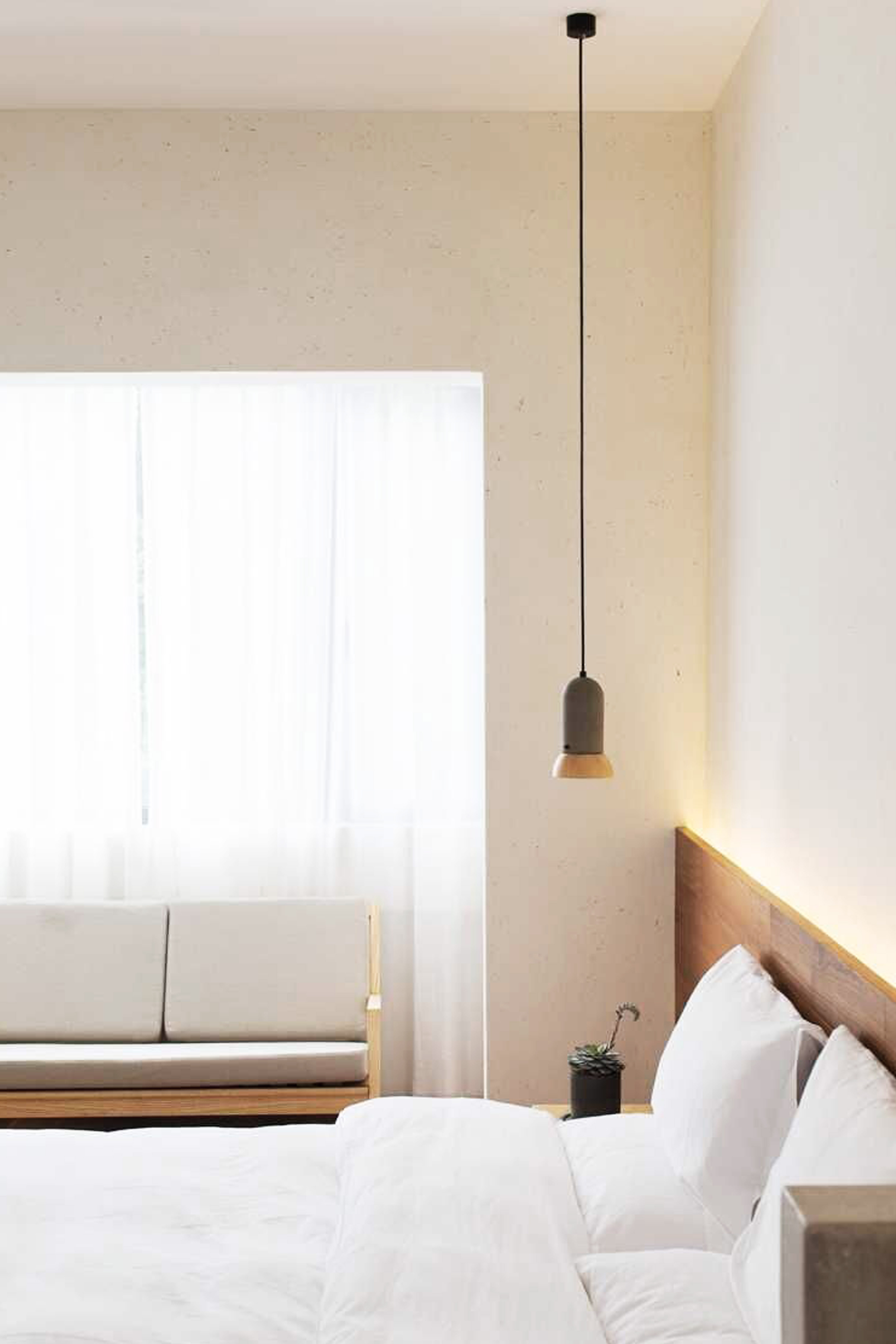 水泥是一种低调的材料,没有情绪,是亲近。 竹板料是一种天然能吸引人的环保材料,是亲近。把它们放在一起,是自然,是和谐。