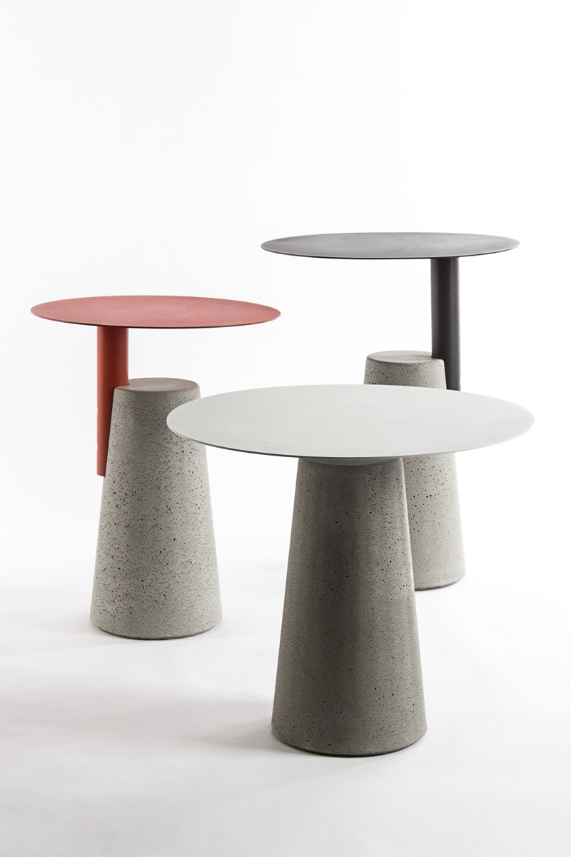 一竖加两竖,加三竖;红色搭黑色,搭白色,所见即所得,简单就是法则。用“0”形金属面板与水泥墩做一道减法,生产工序至简,功能至简,造型至简。简单才是需求,给设计做笔减法,去除复杂的修饰、多余的功能,凝炼欲望,简化造型,一切只为直白的使用与纯粹的美。在加工和组装工序上的简化,能有效节省生产成本。作为边桌,具有很强的功能性目的,贴合现代居室的简约理念,没有过多的干扰性,适用于现代家居用具的各种组合搭配。