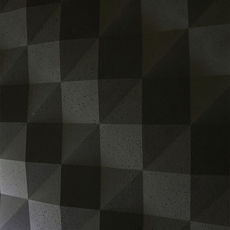 看似单一灰调的墙砖在黑暗中整齐划一如同方针队列般严谨,当光从建筑的缝隙溜进室内,投射其上的光影折射与流逝,赋予了混凝土生命。