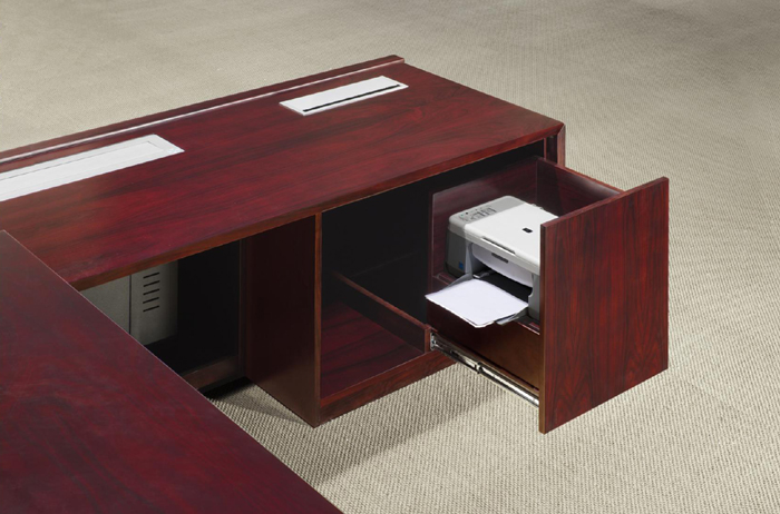 下有固定文件柜支撑。精湛的工艺制作、多功能的配置、深遂红宝