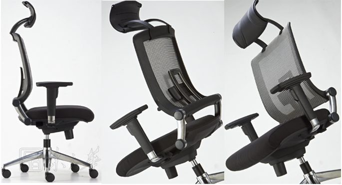 1、椅背:塑料颜色为黑色,采用韩国进口高弹防火网布,透气性强,长久使用不变形,固定腰靠支撑人体坐姿,久坐不疲劳。2、扶手:铝合金扶手架,可上下3级调节,优质PU扶手面可水平左右旋转1级调节。手感舒适。
