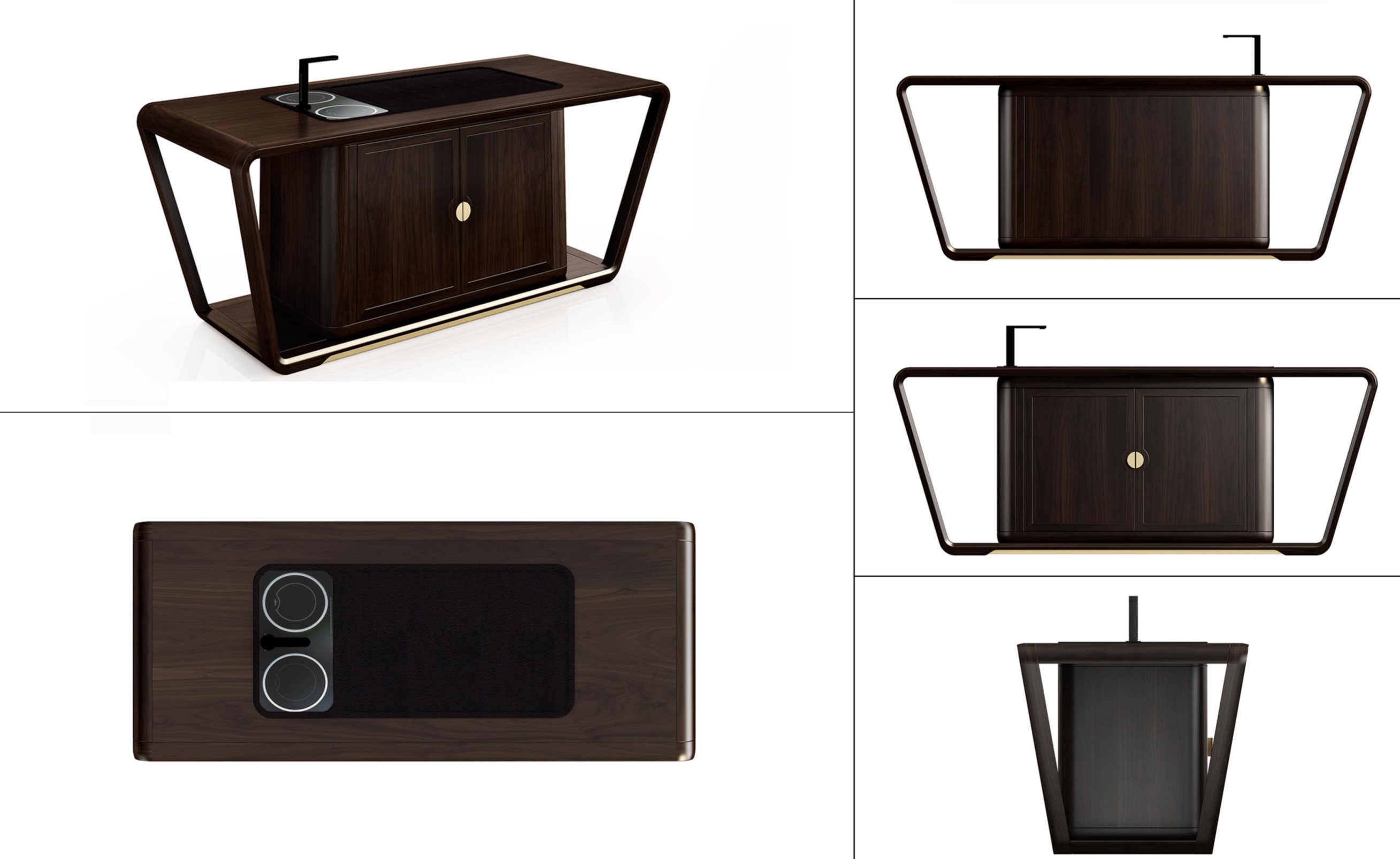 1.整体造型,简洁精巧,虚实相应,通透感强。 2.内置接水装置,使用功能性强。 3.半圆形铜制拉手,在保证实用性的同时,赋予独特中式韵味,彰显价值。