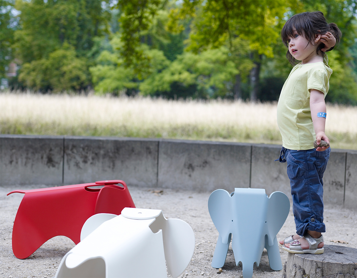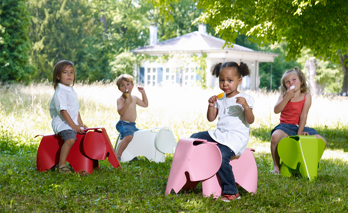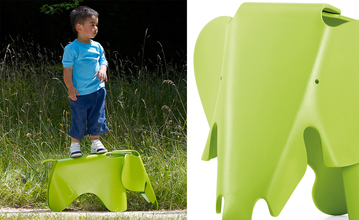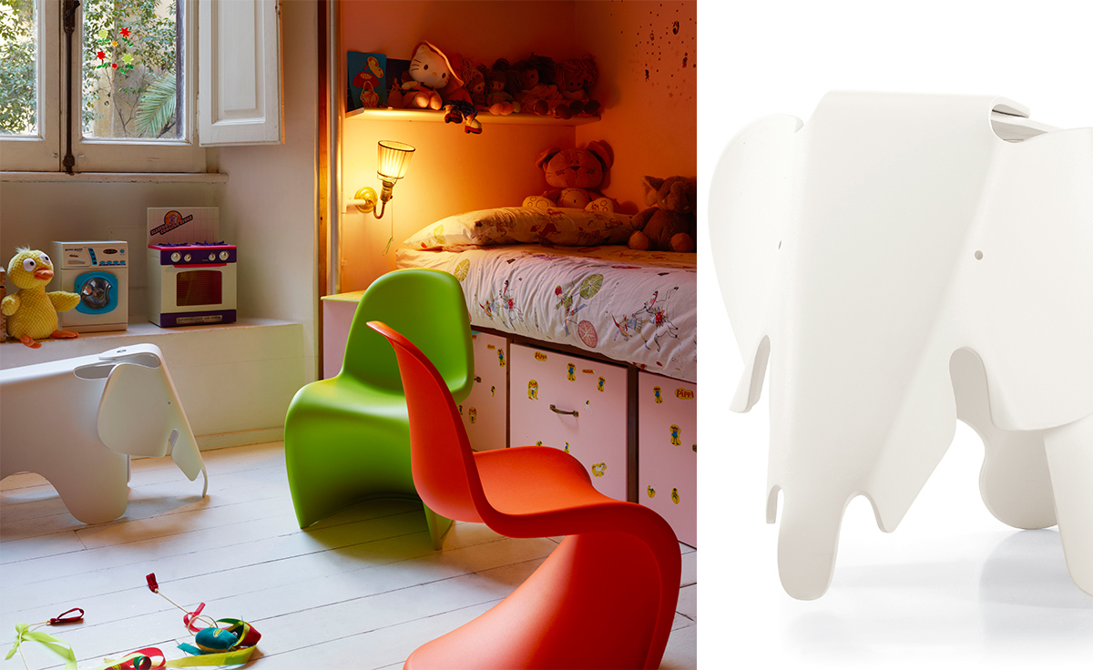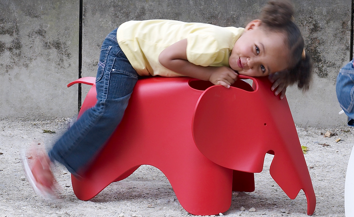 充滿童真和創意的可愛玩伴,是 Charles & Ray Eames 於1945年為女兒設計的玩具椅,由壓模合版技術製成的原型全球僅有兩張。昂貴的壓模合版製造技術始終沒有投入量產之中,直到2007年 Vitra 推出限量的 Plywood Elephant 之後,於2008年更是推出了塑膠版的大象兒童椅。材質的轉變不單迎合了設計師原本兒童玩具用途的初衷,更符合了 Charles and Ray Eames 長久以來的設計理念:「盡可能將最好的設計以最低的價錢分享給最多的人!