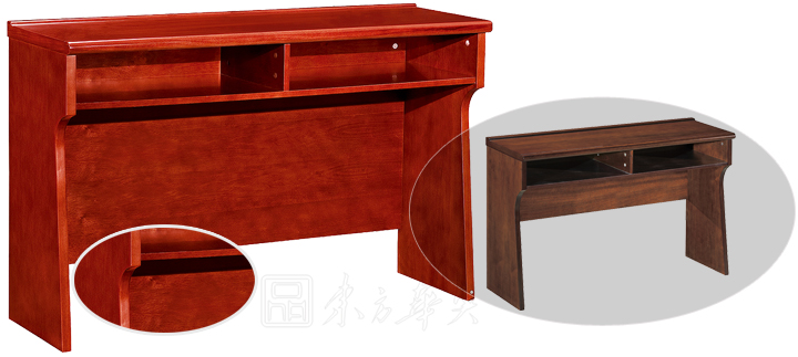 ※ 全木制结构条形桌,桌脚可做直形及弧形,下设空格储物空间,内置麦克孔,不同的颜色选择,满足不同需要;